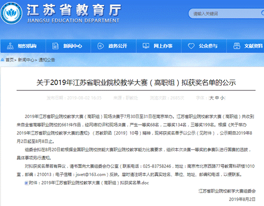 7月30日至31日,2019年江苏省职业院校教学大赛(高职组)现场决赛在南京举办。糖果派对官方 获得一等奖1项、二等奖1项、三等奖1项。其中,学前与特殊教育学院团队荣获一等奖,音乐舞蹈系团队荣获二等奖,信息与网络中心团队荣获三等奖。