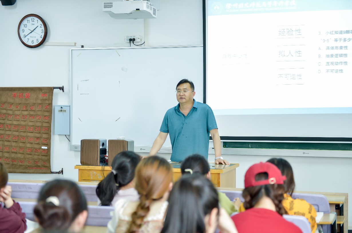 李国强选取《学前儿童发展心理学》课程中的“学前儿童数概念的发展”章节作示范教学。示范课以培养学生综合能力为导向,围绕儿童“数概念”的形成过程,精选教师资格证考试真题,结合幼儿园教学实录,精心设计教学过程,体现了课、岗、赛、证融合的教学理念。张丽萍把坚定“四个自信”,增强大学生建设中国特色社会主义、实现中华民族伟大复兴的历史自觉和使命担当作为《毛泽东思想和中国特色社会主义理论体系概论》的教学价值目标。示范课选取“社会主义改造理论”为讲授章节,教学设计将培养学生的思辨能力放在首位,以开放性的问题启发学生思考,让学生思有所悟,学有所得,更加坚定中国特色社会主义制度自信。研讨环节,陈萍和崔卫成以两节示范课为例,分别从课堂教学设计、金课标准、教育情怀等方面做了深入地剖析,通过教学行为的表象,分析做出不同教学选择的内因,让听课教师能够知其然更知其所以然。王宁鼓励青年教师在名师引领之下,扎实专业积累,永葆教育情怀,树立对学生负责的意识,不断提升教学能力和水平。