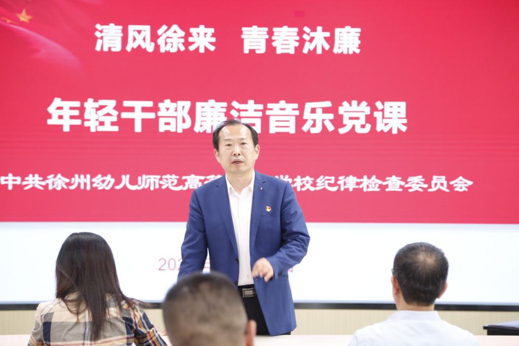 5月23日下午,校纪委邀请音乐舞蹈学院教授孙玉柱为年轻干部讲授了一堂别开生面的廉洁音乐党课。校党委委员、纪委书记王启高、全体年轻干部参加了活动。