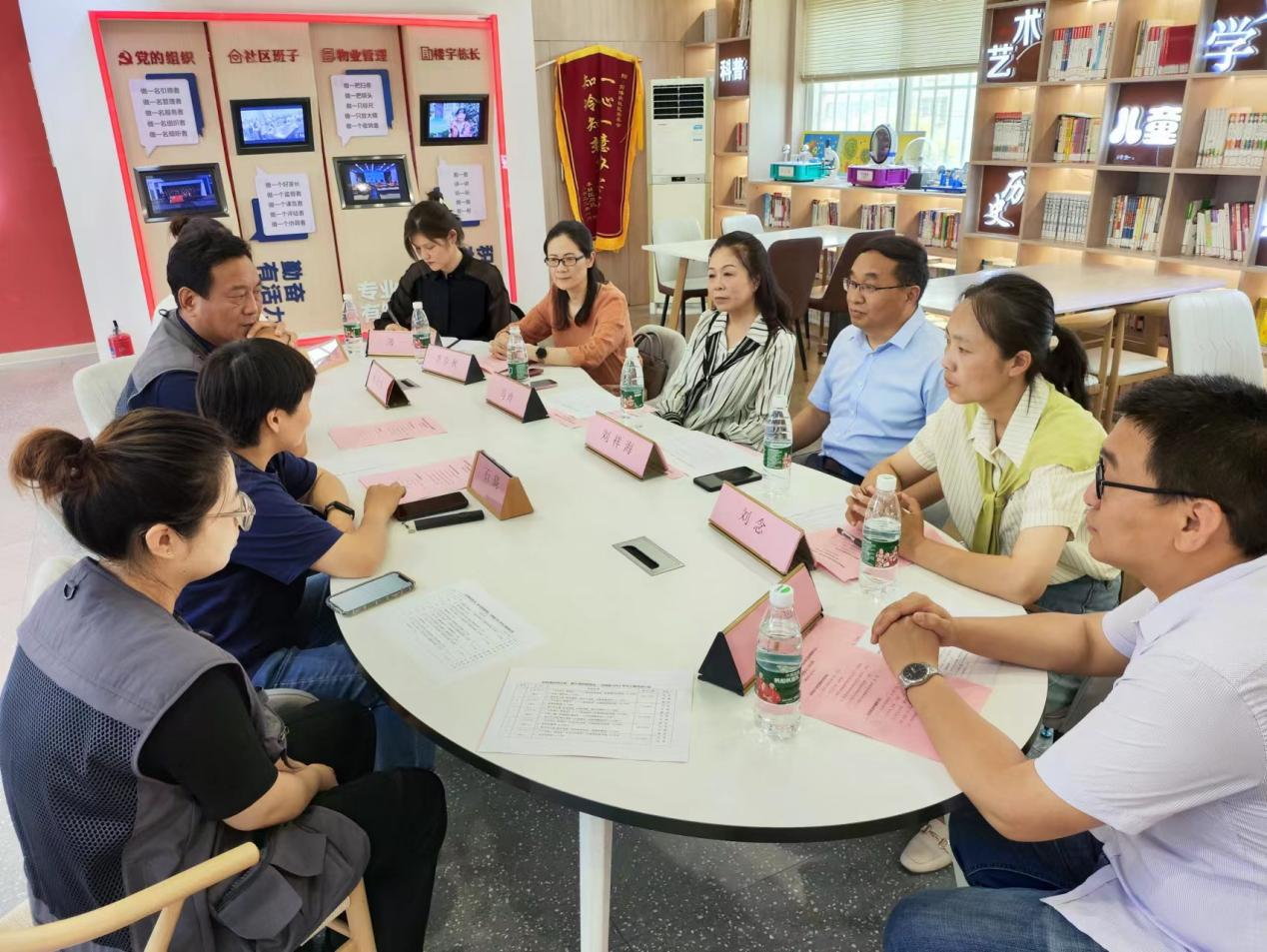 在程卫东的陪同下,大家还参观了前蟠桃社区党群服务中心。宽敞明亮的“一站式”服务环境,舒适整洁的活动场所,智能便捷的功能服务给老师们留下深刻印象。