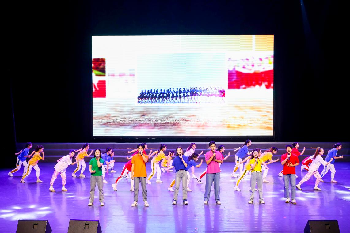 本次典礼还为全体毕业生精心准备了文艺节目展演。一曲《同一首歌》带领全体毕业生重温了共同走过的校园美好时光;辅导员们带来的歌曲《祝你一路顺风》,为即将毕业的莘莘学子送上了最美好的祝福;歌舞表演《我们都是追梦人》表达了当代青年在青春赛道上奋力奔跑的决心与信心;情景剧《这世界有那么多人》、快闪及合唱《再见》把现场氛围推向高潮,同学们点亮手机跟随歌曲节奏挥舞手臂、齐声高歌,致敬母校、致敬过往。最后,全体师生深情吟唱校歌《向着太阳升起的地方》,2023届毕业生们在全体领导老师的目送与挥手告别下,依依不舍地离开典礼现场,奔赴新的征程。