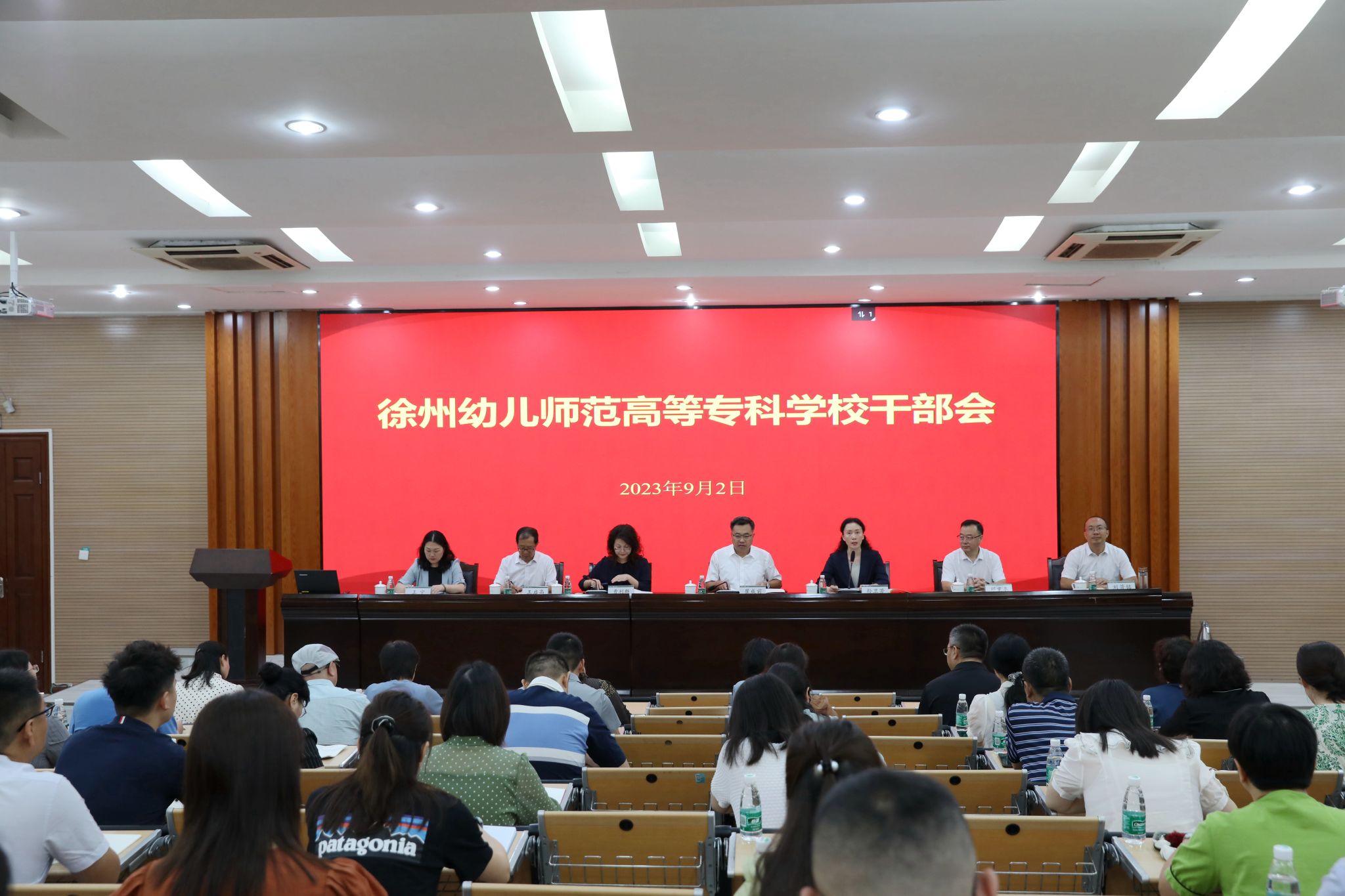 在碧螺校区学术报告厅召开新学期干部会。校领导班子全体成员、全体干部参加会议。会议由党委副书记曹利群主持。