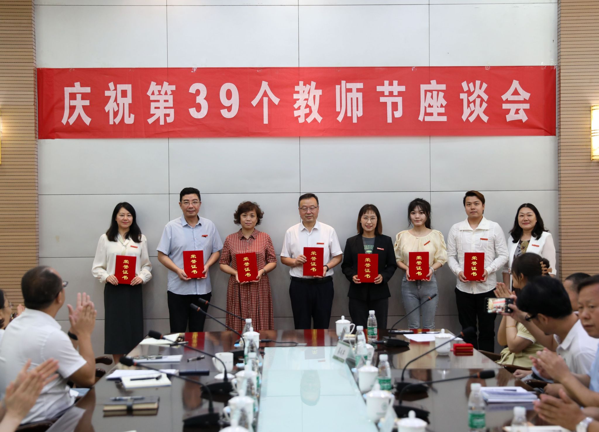 在碧螺校区100A会议室举行“躬耕教坛,强国有我”庆祝第39个教师节表彰座谈会暨教职工荣休仪式。校领导班子成员、相关职能部门主要负责人、年度荣休教师、教育工作满30周年教师、2023年新进教师和受表彰的集体、个人代表齐聚一堂,共同庆祝属于全体教育工作者的节日。座谈会由校党委副书记曹利群主持。