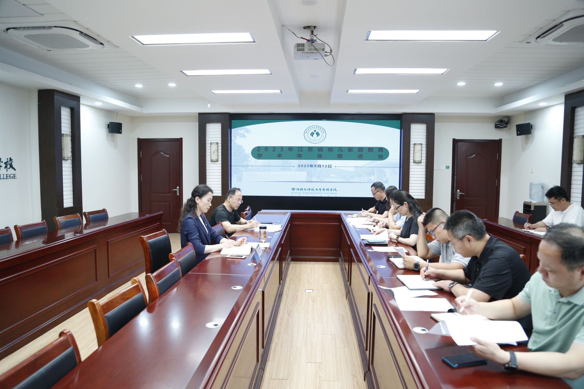 在洞山校区208会议室召开2023年江苏省幼儿家庭教育学术年会推进会,校长孙卫芳出席会议,各相关单位负责人参加会议,会议由科研处处长李飞主持。