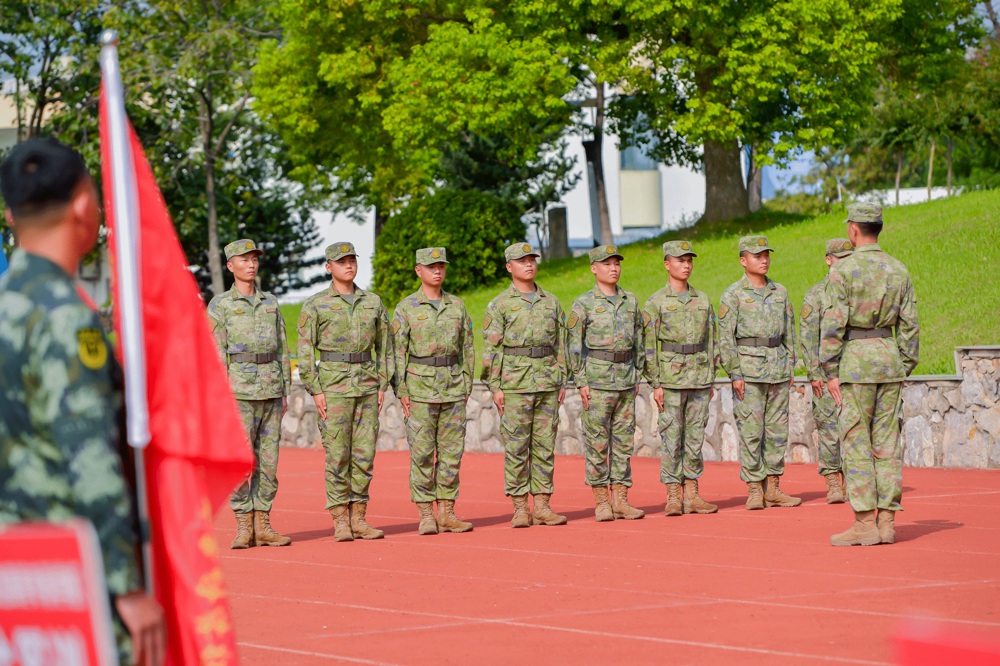 最后,刘芳铭向军训团教官陈昊教导员授军训团团旗,并宣布糖果派对官方