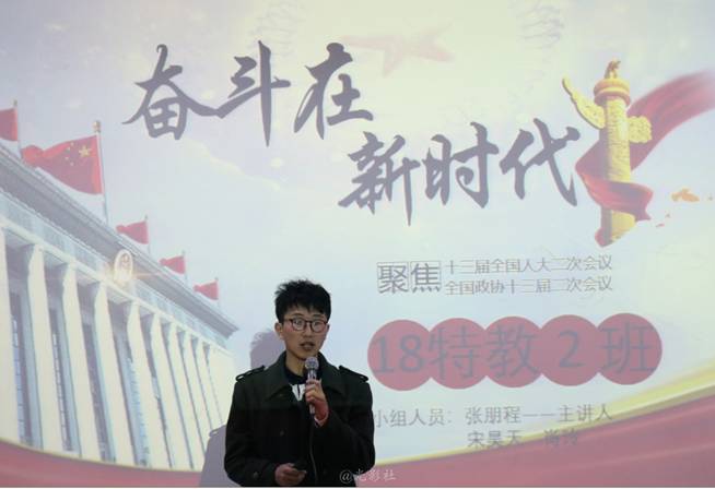 为贯彻落实全国思想政治理论课教师座谈会精神,促进青年学生全面了解、认真学习“两会”精神,激发他们的爱国热情和民族自信心,引导他们坚定“四个自信”,进一步增强实现中华民族伟大复兴“中国梦”的责任担当意识和历史使命感,值2019年“两会”召开之际,糖果派对官方 思政部以习近平新时代中国特色社会主义思想为指导,在糖果派对官方 17级、18级全体学生中组织开展了“徐幼学子‘议两会’”演讲比赛。本次活动由思政部主办、思政部学生社团“前沿社”协办。