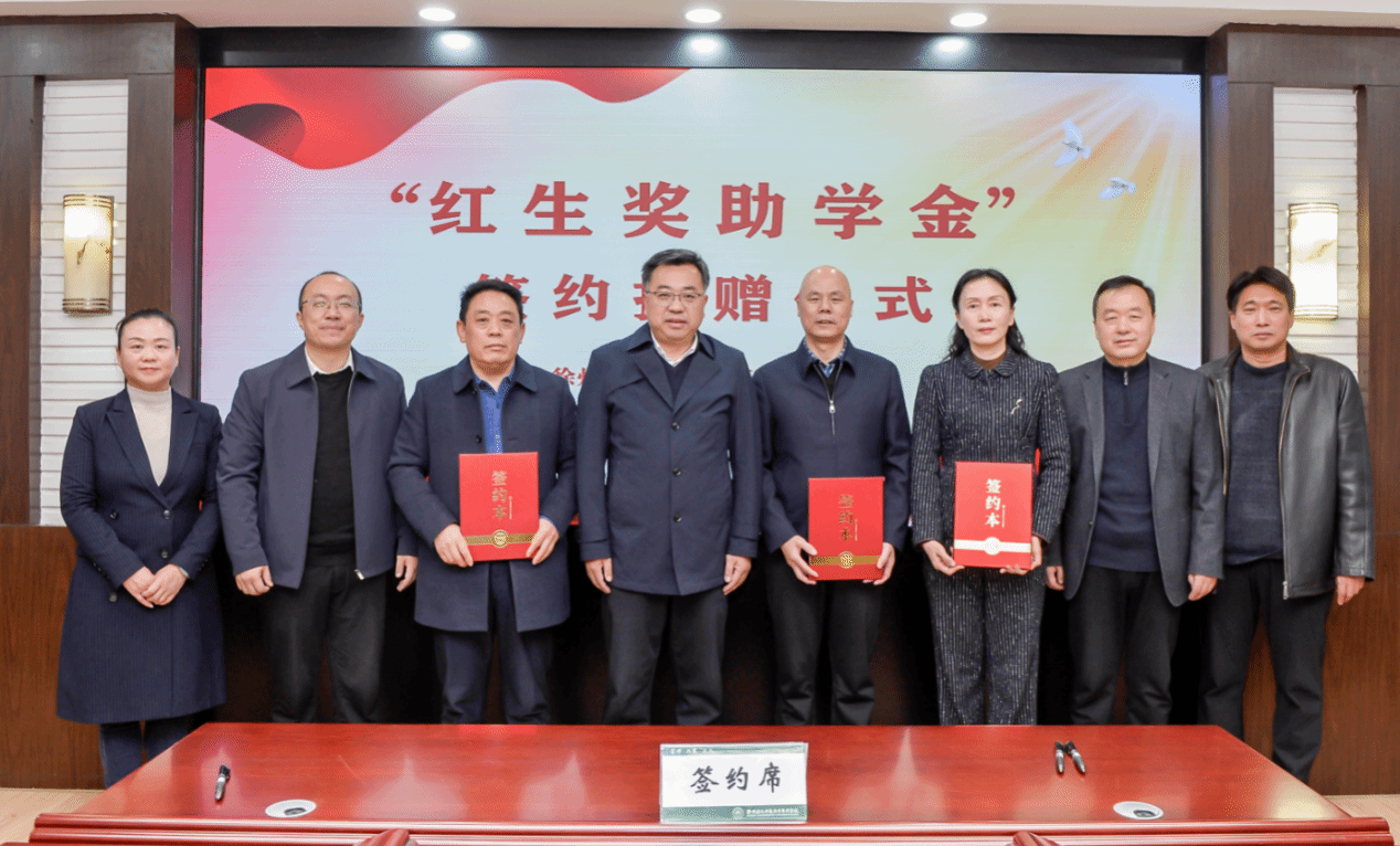 在洞山校区208会议室举行“红生奖助学金”签约捐赠仪式。社会爱心人士葛红、薛田生,校党委书记崔成前,党委副书记、校长孙卫芳,党委委员、副校长邓宪亮、刘芳铭出席活动。学生工作处、招生就业处部门负责人和各二级学院学生工作负责人及学生代表参加了签约捐赠仪式。仪式由刘芳铭主持。