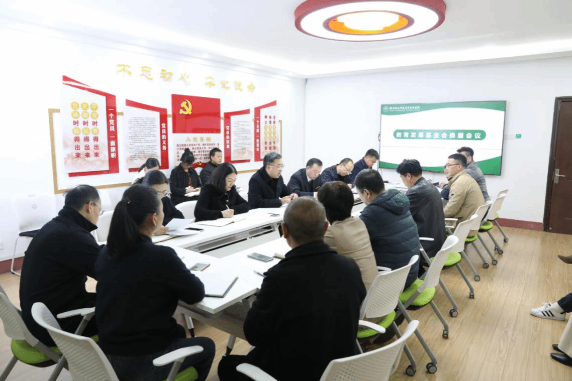 教育发展基金会换届会议在洞山校区206会议室召开。第二届理事会理事、监事及第三届理事会、监事会候选人参加会议。会议由第二届理事会秘书长褚香主持。