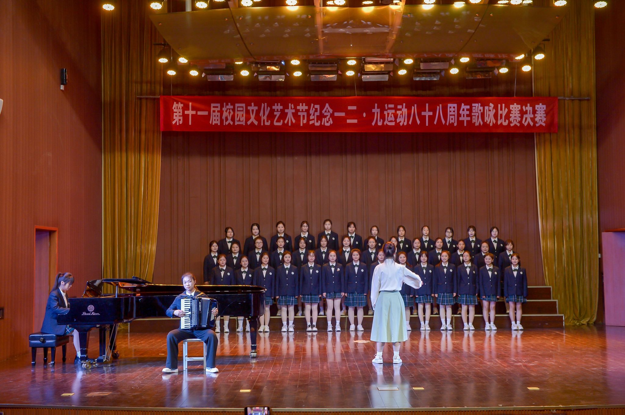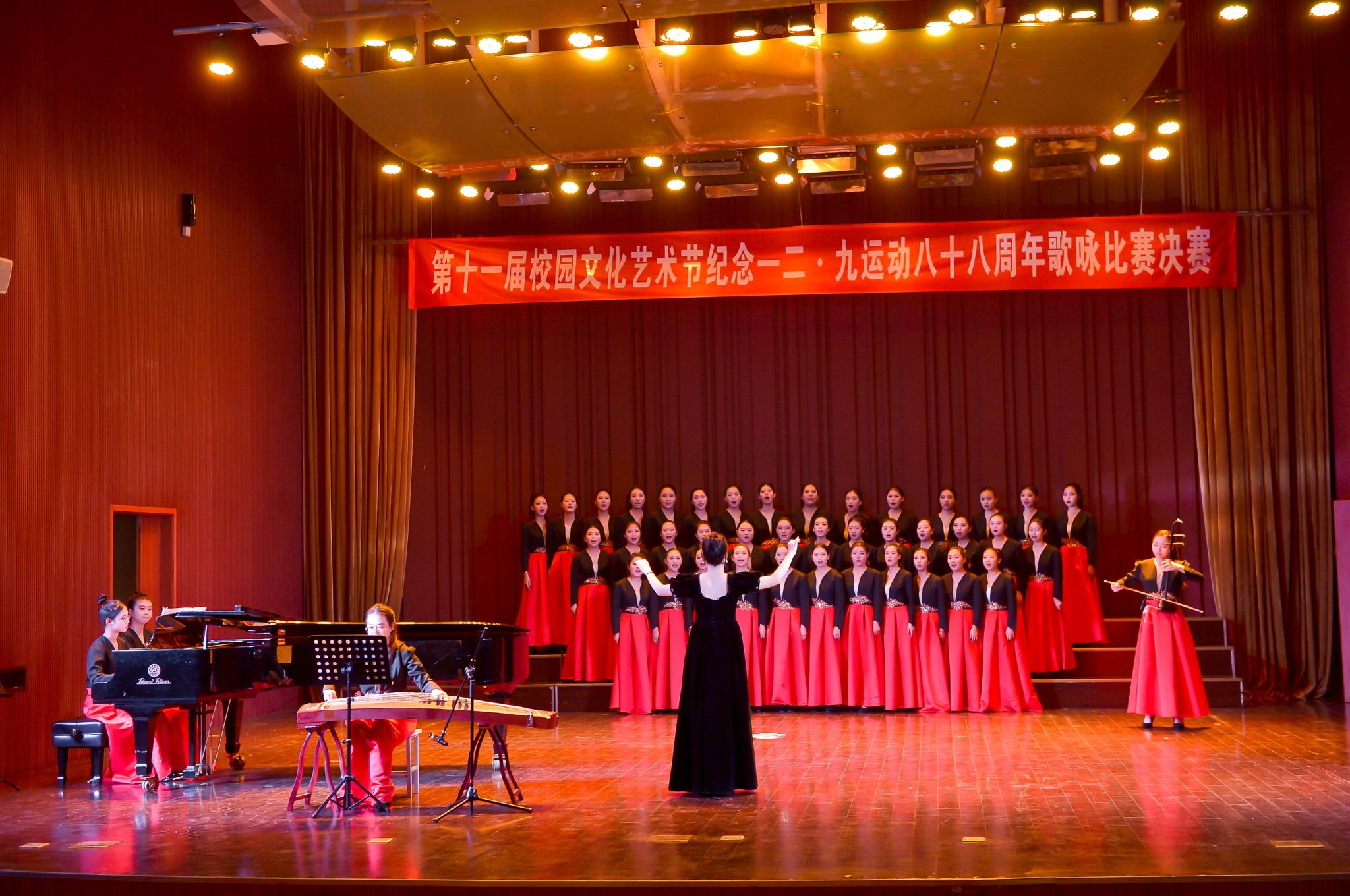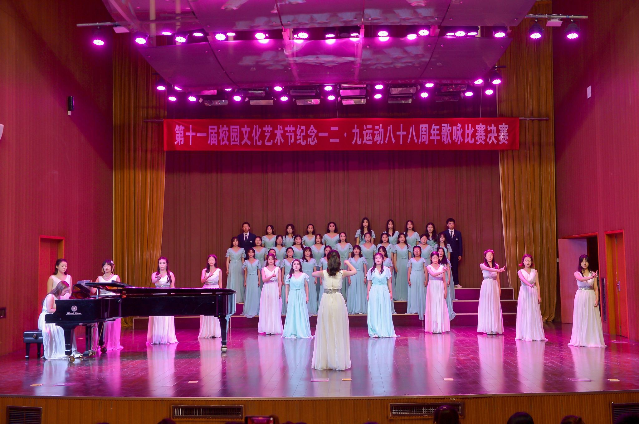 12月8日下午,糖果派对官方 在致美楼音乐厅举行第十一届校园文化艺术节纪念一二·九运动八十八周年歌咏比赛。学生工作处、马克思主义学院相关负责人和各学院师生代表参加了此次活动。