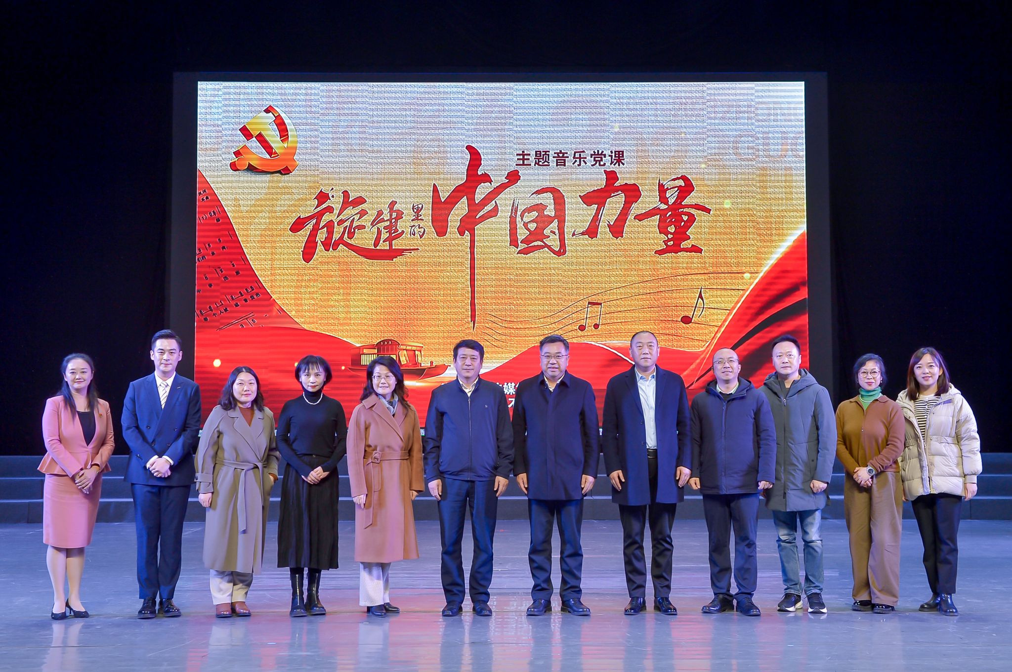 与徐州广播电视传媒集团联合举办主题音乐党课。全校党员和学生入党积极分子、团员青年近千人齐聚洞山校区演播厅,共同聆听《旋律里的中国力量》。