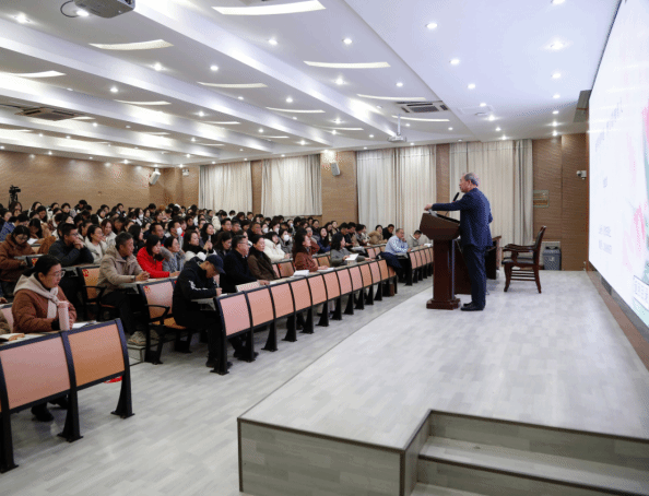 曲教授引经据典,金句频出,引起在场师生心灵上的共鸣。他结合自己四十多年的高校辅导员工作经历,通过丰富的育人案例、珍贵的师生照片,与学生相处的点滴故事,分享了他对大学生思想政治教育工作的经验和独到见解,诠释了教师立德树人的重要使命和责任担当,展现了一名教育工作者对学生、对教育的赤诚之心。曲教授还为辅导员老师提出工作建议:一要做好思想理论教育和价值引领,二要重视少数民族教育工作,三要加强网络思想引领,四要加强学生干部(党员)教育工作,五要帮助学生规划人生,六要注重寝室文化建设,七要加强法治教育,八要形成家校合力。曲教授对在场学生提出殷切期盼,一要坚定理想信念,为中华之崛起而读书,“扣好人生的第一粒扣子”;二要提高理论素养,在大学阶段积累学识,厚积薄发。