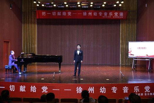 《把一切献给党》主题党课由音舞学院党总支第一党支部书记孙玉柱教授主讲,党课共分为“峥嵘岁月、光辉历程、盛世中华”三个篇章,每个篇章包含三首具有代表性的红色音乐,孙教授以红色音乐创作背景、产生的历史意义为切入点,结合党员老师和学生的现场演绎,将中国共产党艰苦创业、砥砺前行、铸就辉煌的奋斗史鲜活地呈现在师生面前。红色音乐的精神力量鼓舞人心,现场掌声不断、高潮迭起。