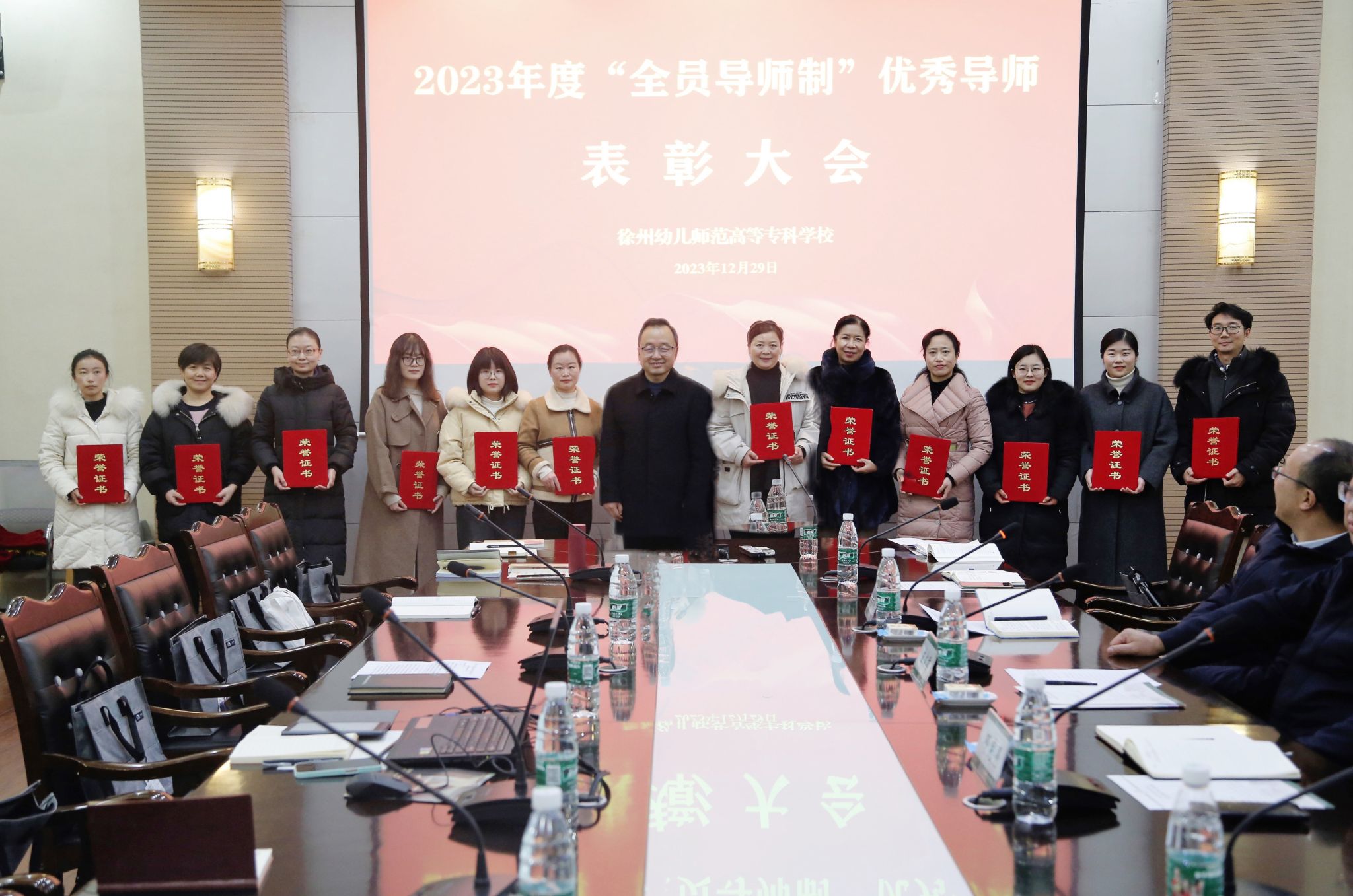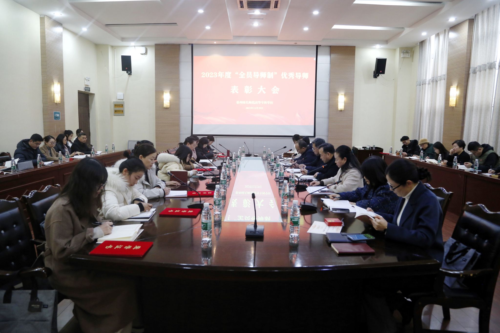在碧螺校区知行楼A100会议室召开2023年度“全员导师制”优秀导师表彰大会暨“全员导师制”工作研讨会。校党委书记崔成前,党委委员、副校长邓宪亮、刘芳铭出席会议,学生工作处、各二级学院相关负责人及优秀导师代表参加了会议。会议由学工处处长陈繁主持。