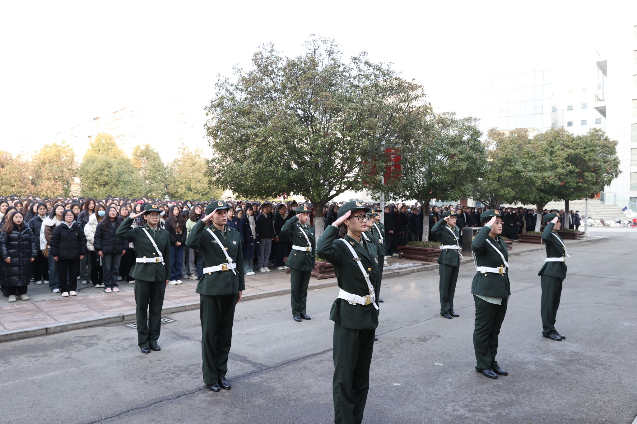 上午8时,国旗护卫队队列整齐、步伐坚定,护卫着国旗步入升旗台。全体师生庄严肃立,行注目礼,齐唱国歌,向国旗致以最崇高的敬意。