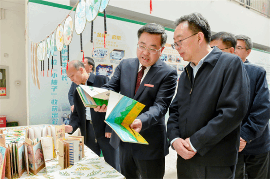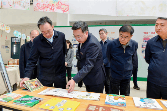 办学历史、育人成果、服务社会等情况汇报,重点了解了“五育”并举、“柚彩纷呈”育人行动计划及内地西藏班学生培养情况,参观了学前教育实训中心,欣赏了内地西藏班学生及学前教育专业学生制作的绘本、书画、纸扇等作品。最后,一行领导到音乐厅观摩音乐与舞蹈学院师生创排的原创徐州琴书《时代楷模张桂梅》表演,并与同学们合影留念。
