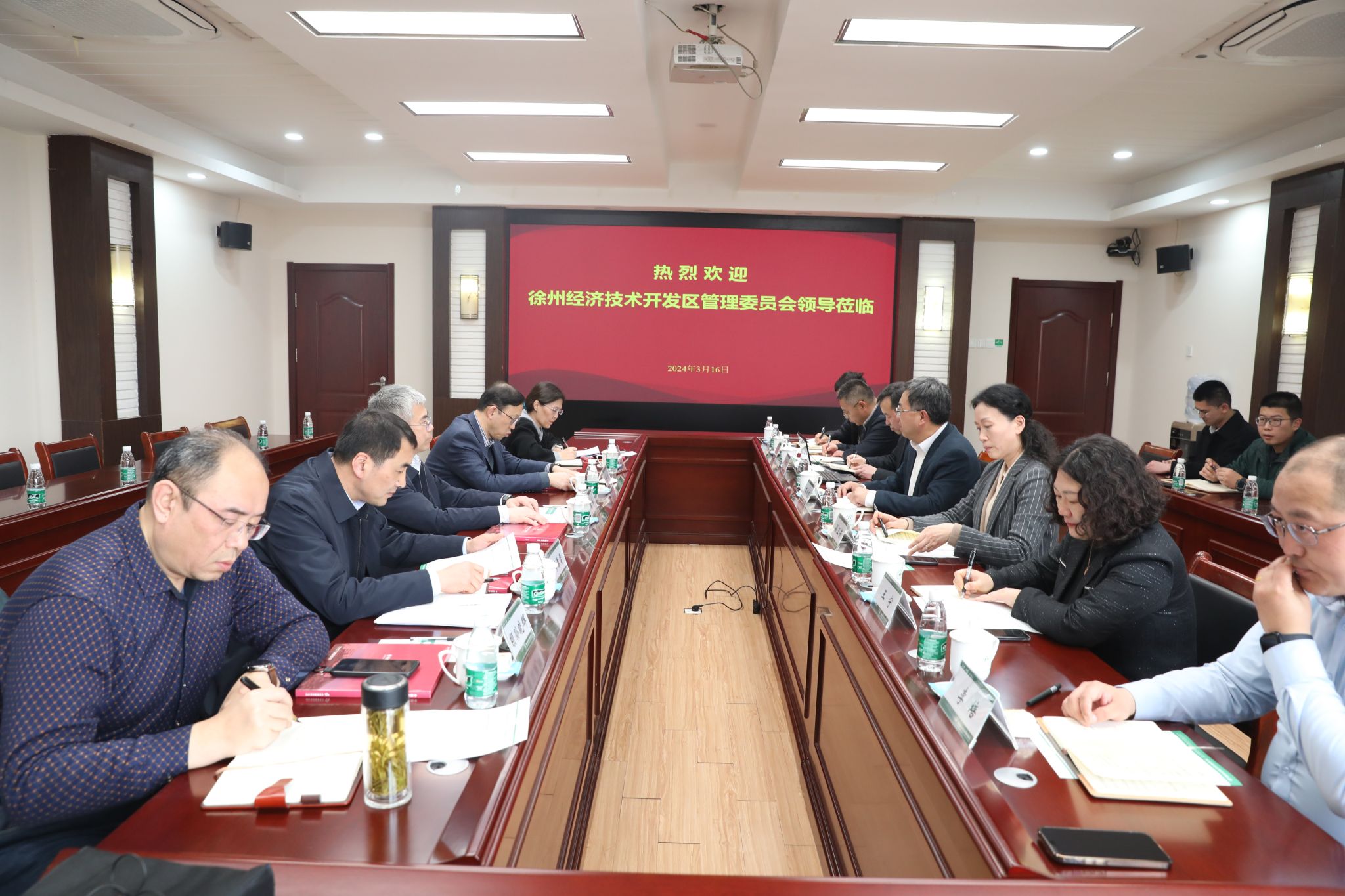 3月16日下午,徐州经济技术开发区管理委员会党工委副书记、管委会主任梁伟,党工委副书记陈明,财政局局长李春雷,资规局局长袁文婷,党政办副主任颛孙晓辉一行5人来糖果派对官方