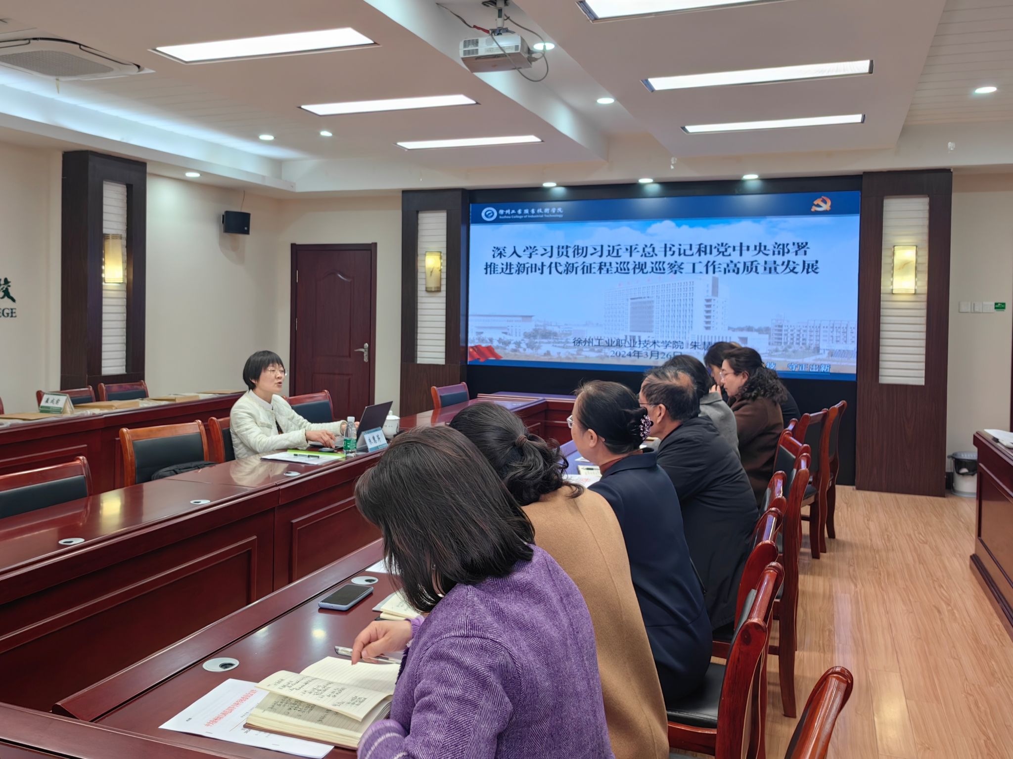 动员会后,徐州工业职业技术学院纪委副书记朱慧芹受邀为本轮全体巡察人员授课,她从新时代巡视巡察工作新要求和高质量开展校内巡察两个方面进行了业务讲解和指导。