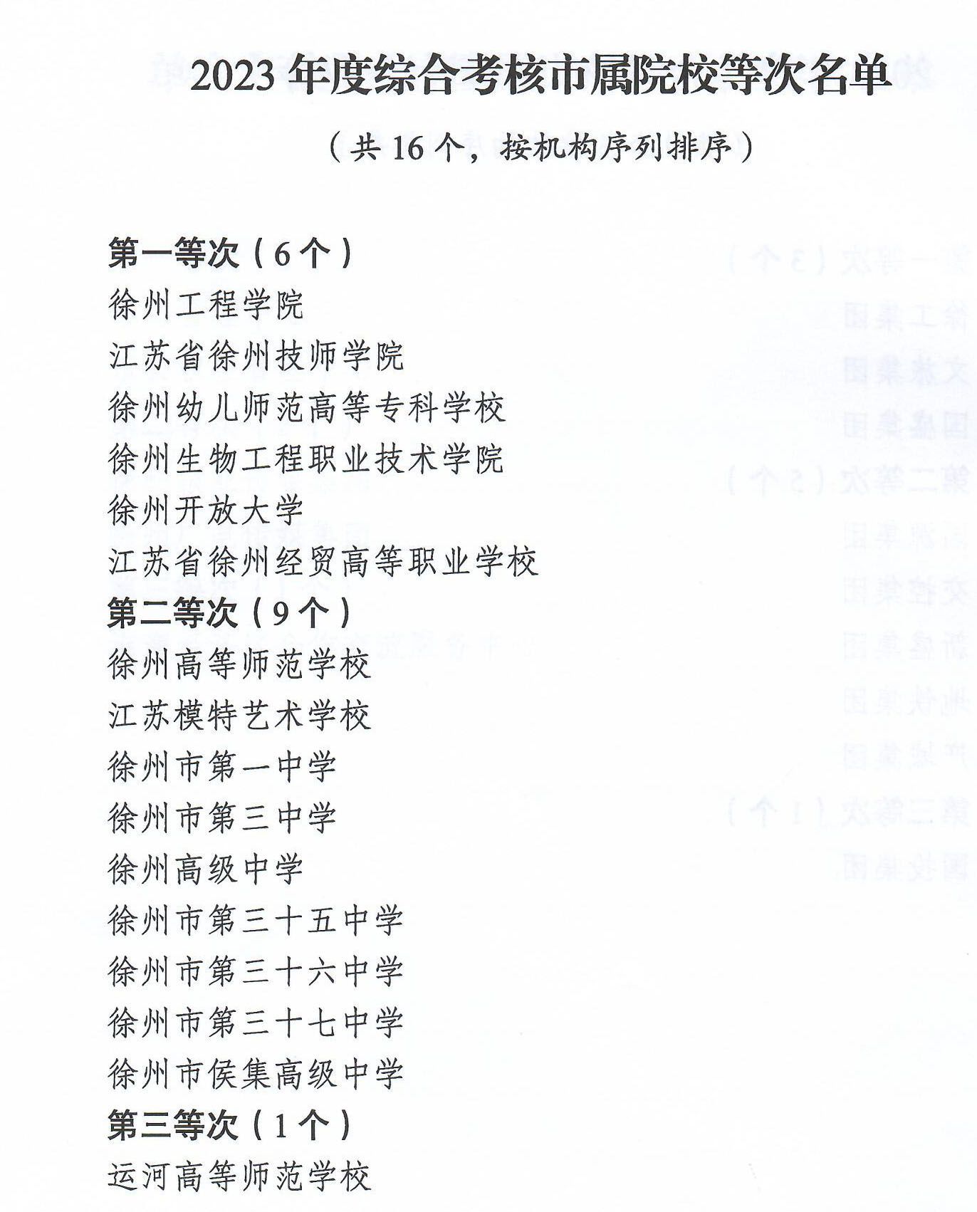 参与本次市属院校年度考核的16家单位中,共评选出第一等次6个,第二等次9个,第三等次1个。此次综合考核是市属院校首次参与全市高质量考核排名,体现了市委市政府对教育领域的高度重视。