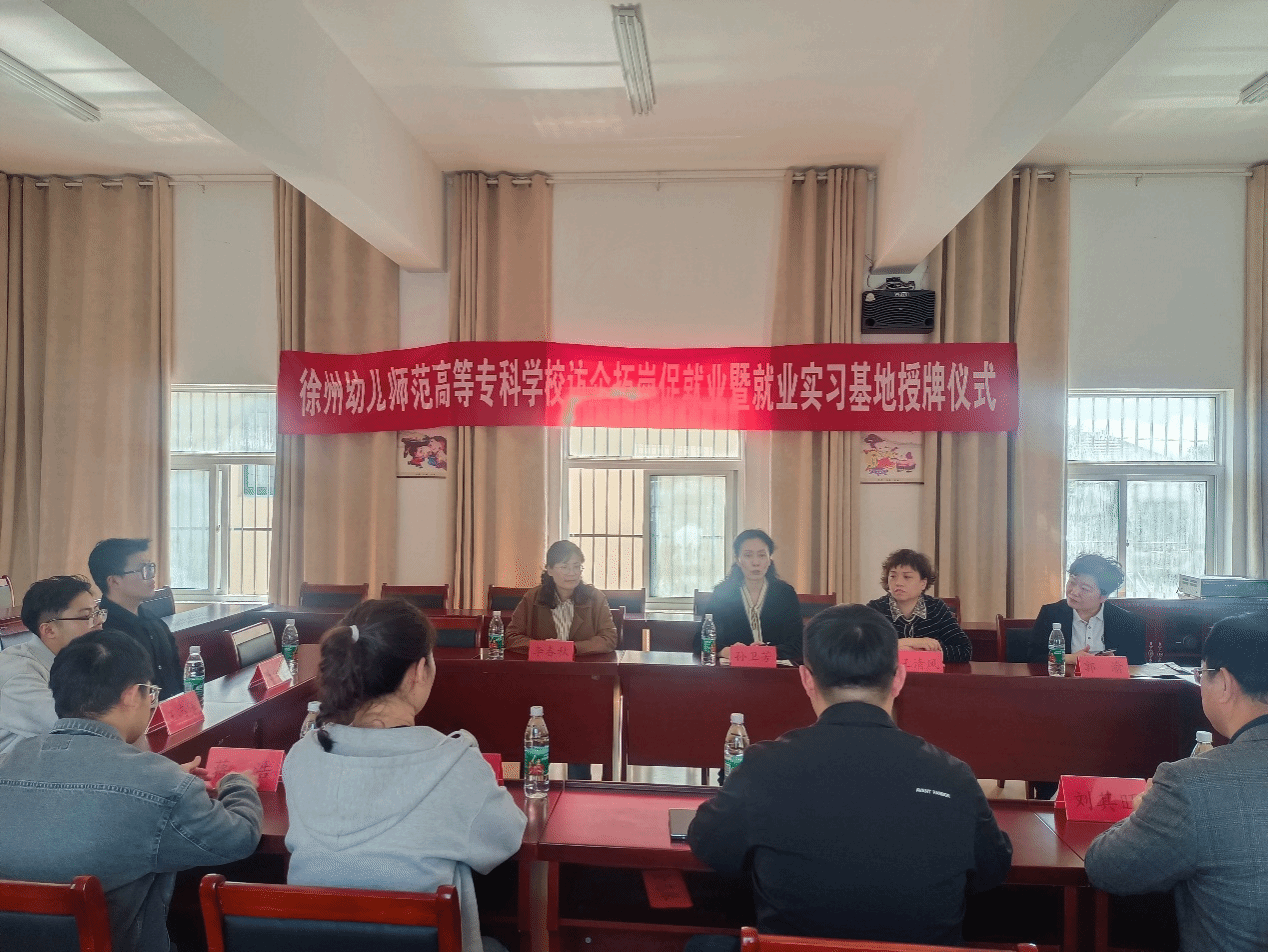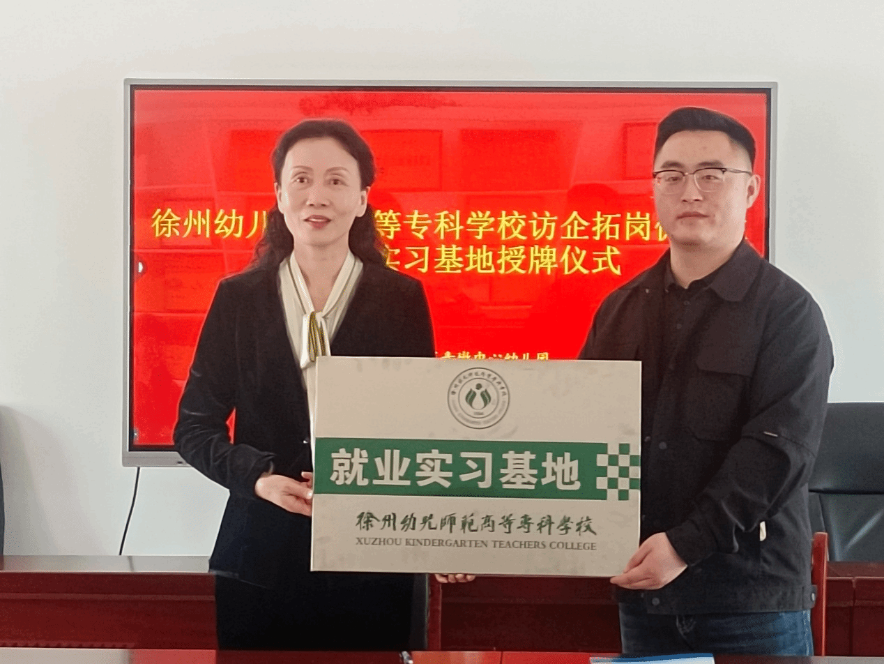 与青墩中心幼儿园签订就业实习基地合作协议,孙卫芳向盐城市亭湖区青墩中心幼儿园授牌。