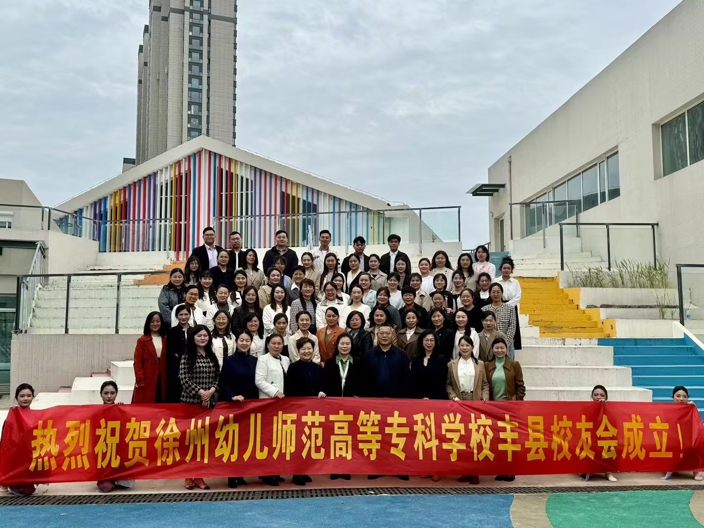 丰县校友会成立大会在丰县明发星悦城幼儿园顺利召开。校党委委员、统战部部长、校友会副会长王震,原党委副书记、校友会顾问马玲,艺术中心主任、校友会副会长吴雪梅,校友会秘书长郭渝出席会议。丰县各届校友代表近80人参加活动。大会由糖果派对官方