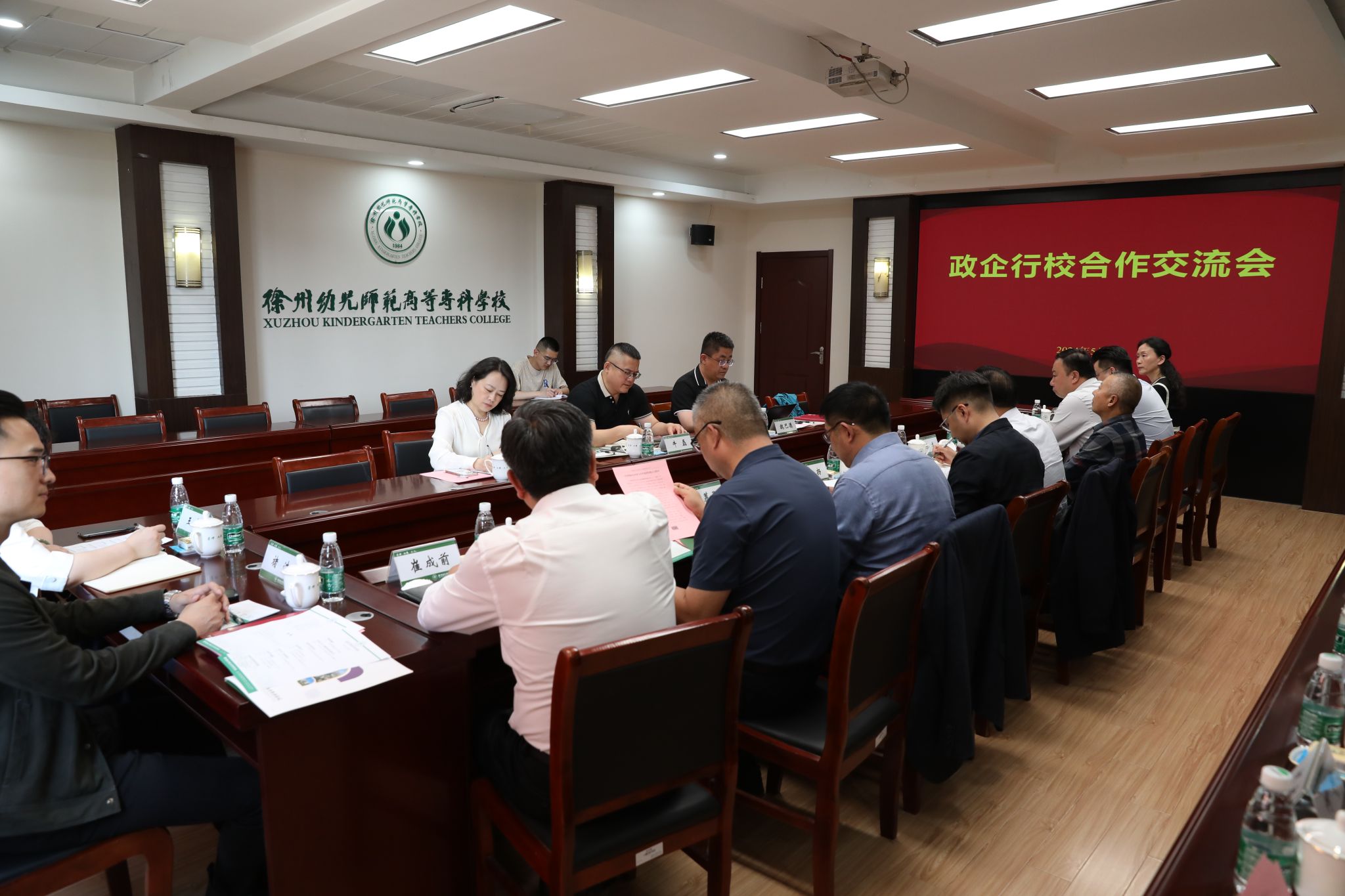 在洞山校区崇师楼208会议室召开政企行校合作交流会。中智科技集团北京公司业务总监牛磊,亲子猫(北京)国际教育科技有限公司董事长魏巴德,高校毕业生就业协会学前工委学术委员会副主任兼秘书长杨洁,徐州市教育局副局长王学伦,徐州市文化广电和旅游局副局长、总工程师李扬,徐州市产业集团党委书记、董事长权太勇,校党委书记崔成前,校长孙卫芳,副校长王宁出席会议。会议由孙卫芳主持。