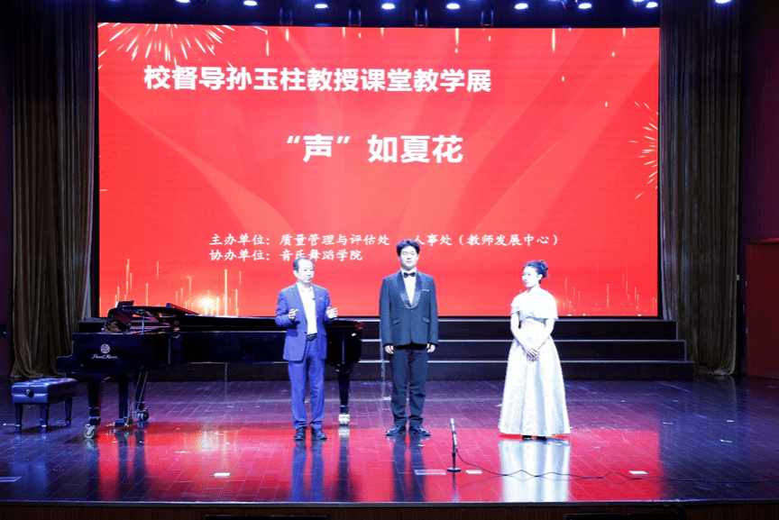 本次课堂教学展以音乐表演学生专业发展为主线,分为“古诗词蕴养,提气练声”“专业歌曲演唱,攻坚克难”“红色经典铸魂,坚定理想信念”三个环节,孙玉柱教授在现场进行示范性个别化指导,展示了两年来学生专业发展成效。本次课堂教学展由琴房走向舞台,锻炼了学生的舞台表现能力,突出了督导教授的教学示范和精讲细导。