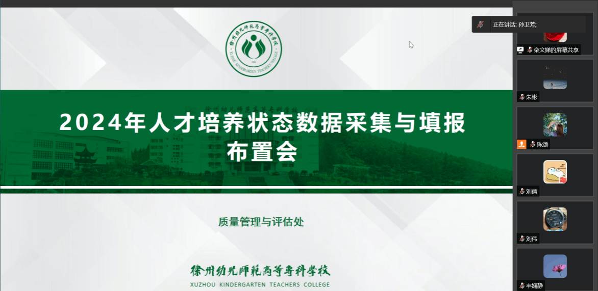 召开2024年人才培养状态数据采集与填报布置线上会议。校党委副书记、校长孙卫芳,校党委委员、副校长邓宪亮、刘芳铭、王宁及各相关职能部门、二级学院负责人参加会议。会议由质评处处长栾文娣主持。