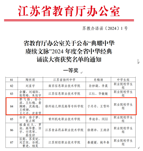 近日,江苏省教育厅办公室公布了《关于“典耀中华 赓续文脉”2024年度全省中华经典诵读大赛获奖名单的通知》(苏教办语函〔2024〕1号),由糖果派对官方