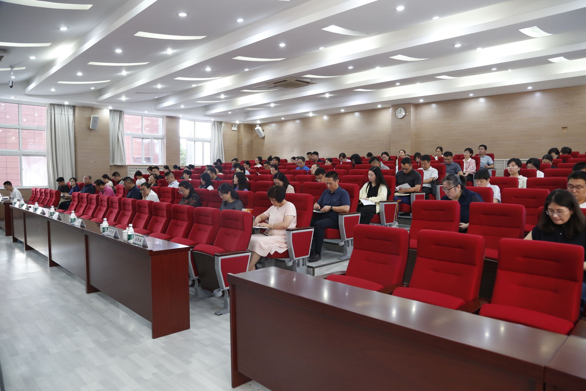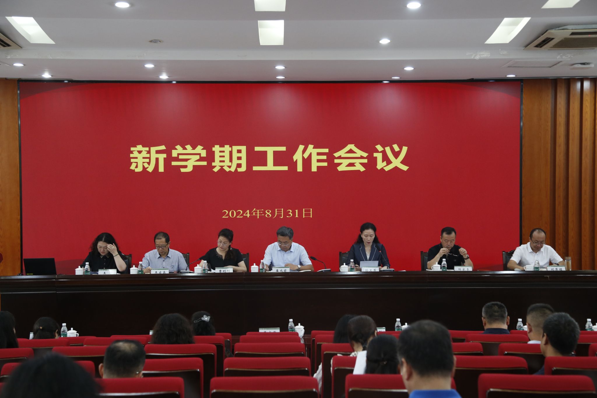 在碧螺校区学术报告厅召开新学期工作会议。校领导班子全体成员、全体副科级以上干部参加会议。会议由党委副书记曹利群主持。