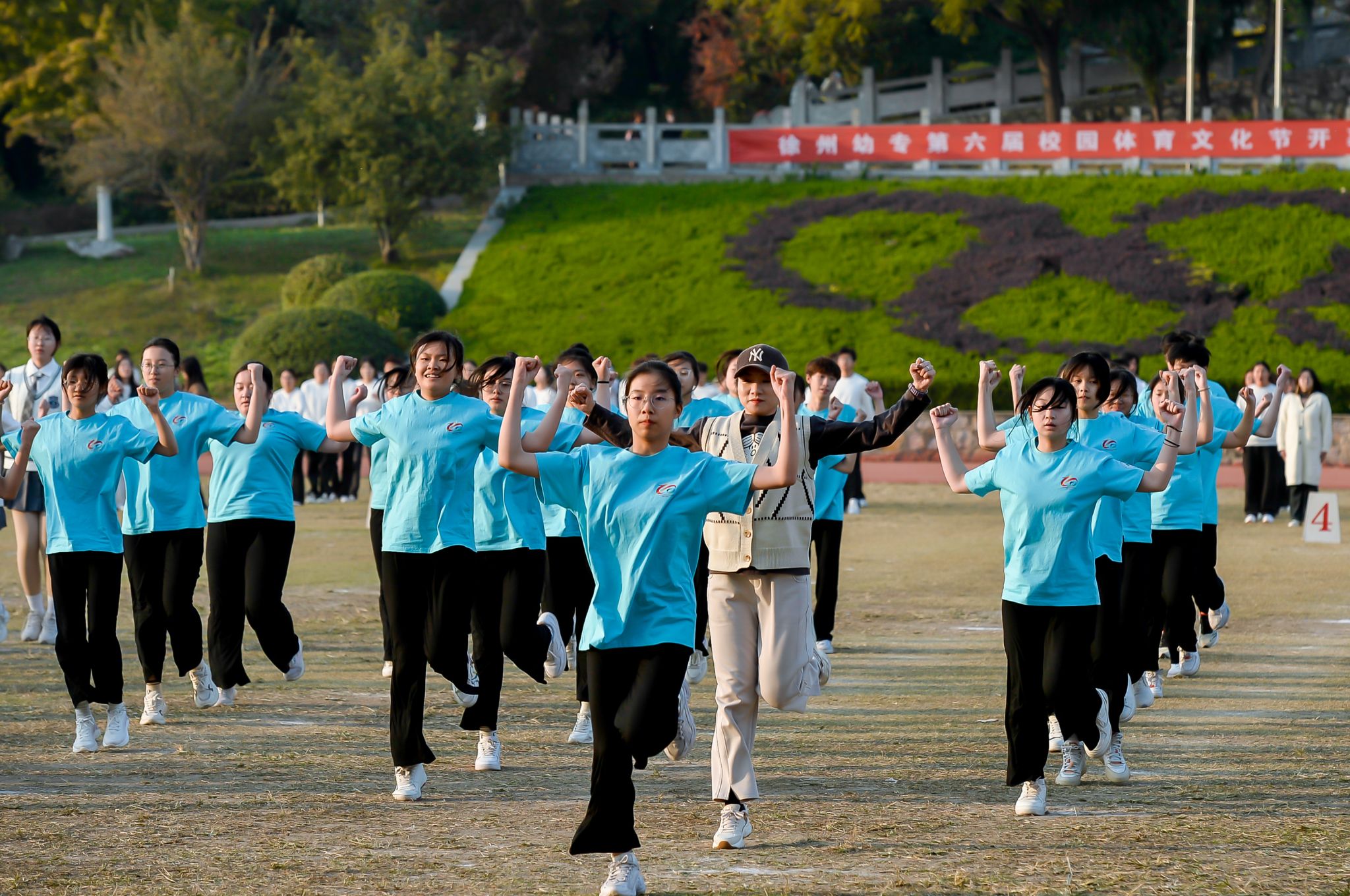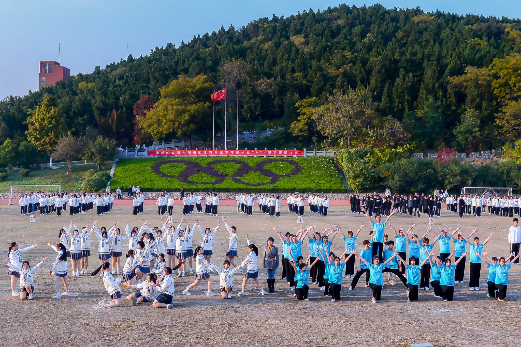 在洞山校区体育场举行徐州幼专第六届校园文化节开幕式暨2024级韵律操比赛。校党委委员、副校长刘芳铭及相关职能部门负责人出席开幕式,2024级全体师生参加活动。开幕式由学生工作处处长陈繁主持。