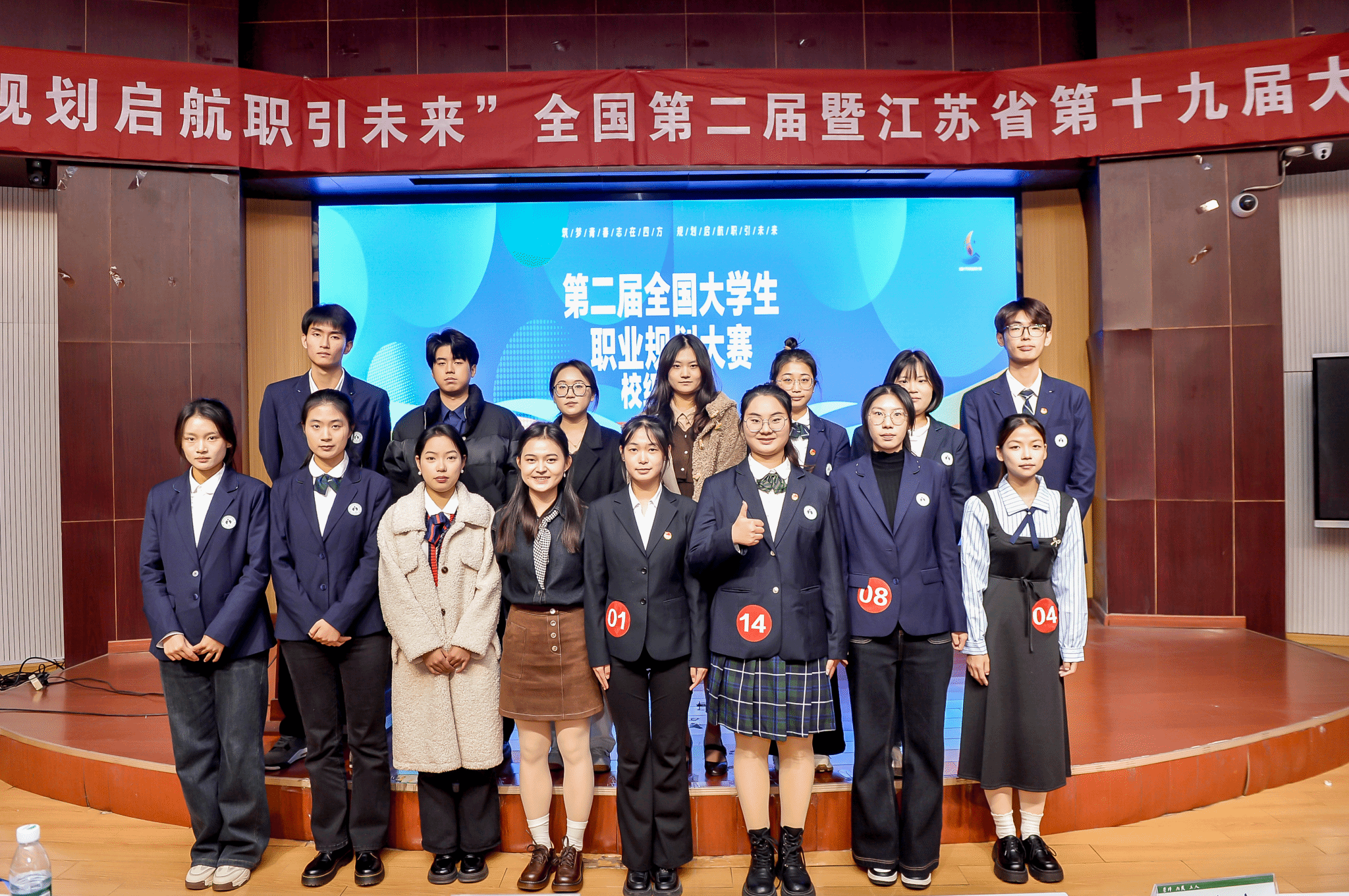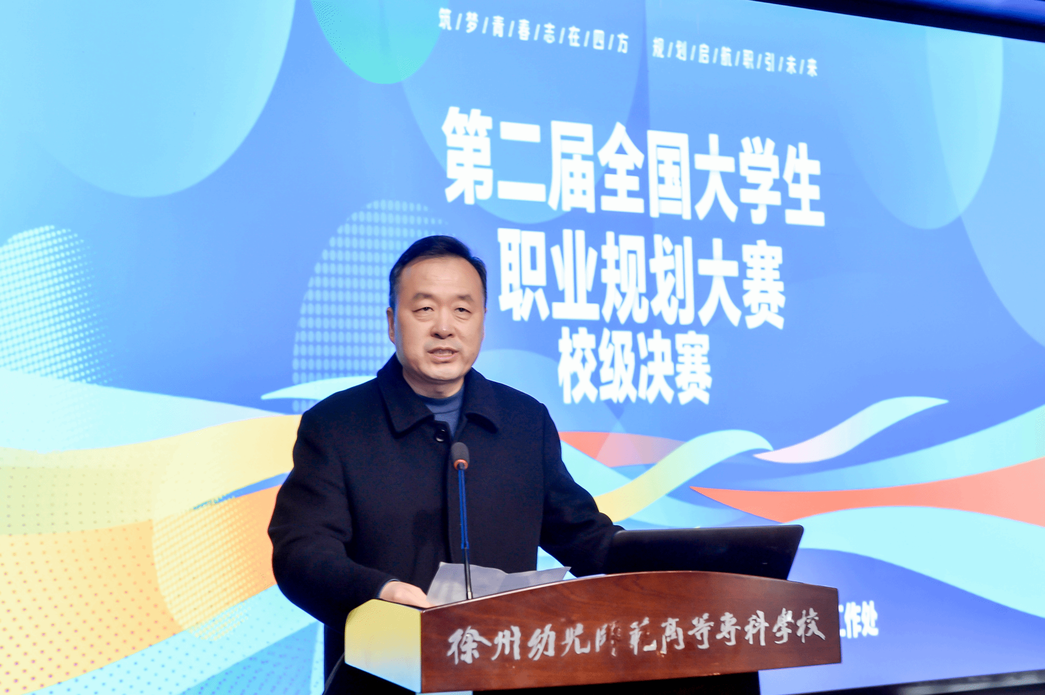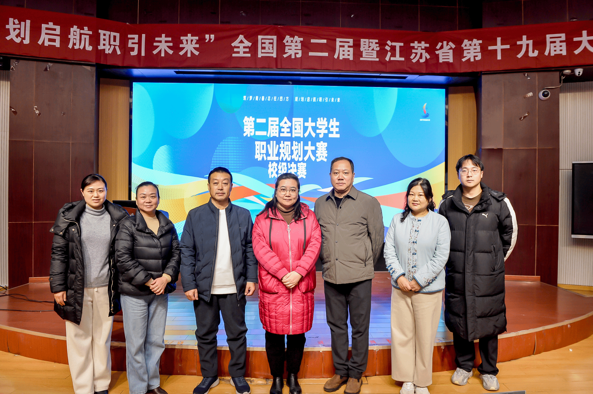 在洞山校区敏行楼大学生活动中心隆重举行了全国第二届暨江苏省第十九届大学生职业规划大赛校赛决赛。此次大赛以“筑梦青春志在四方,规划启航职引未来”为主题,党委委员、副校长邓宪亮、招就处处长张东及二级学院副书记、辅导员、指导教师、学生代表等200多人观看了比赛。