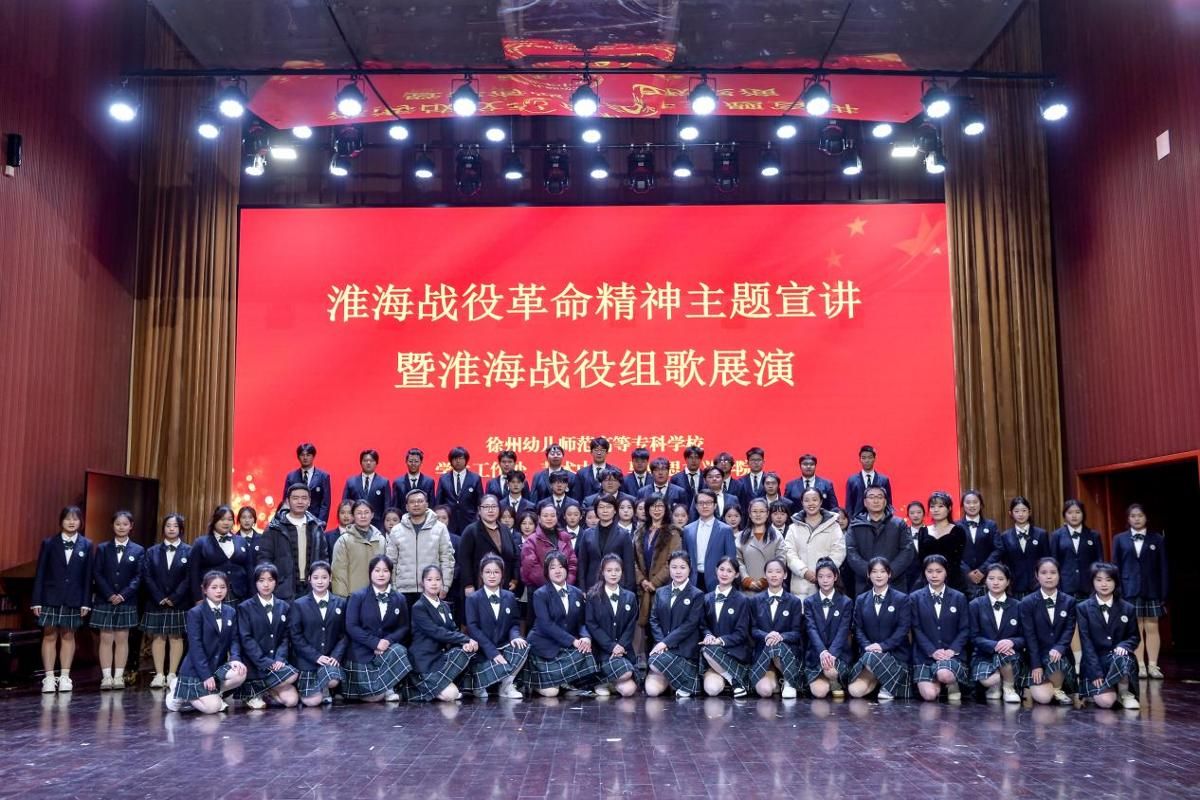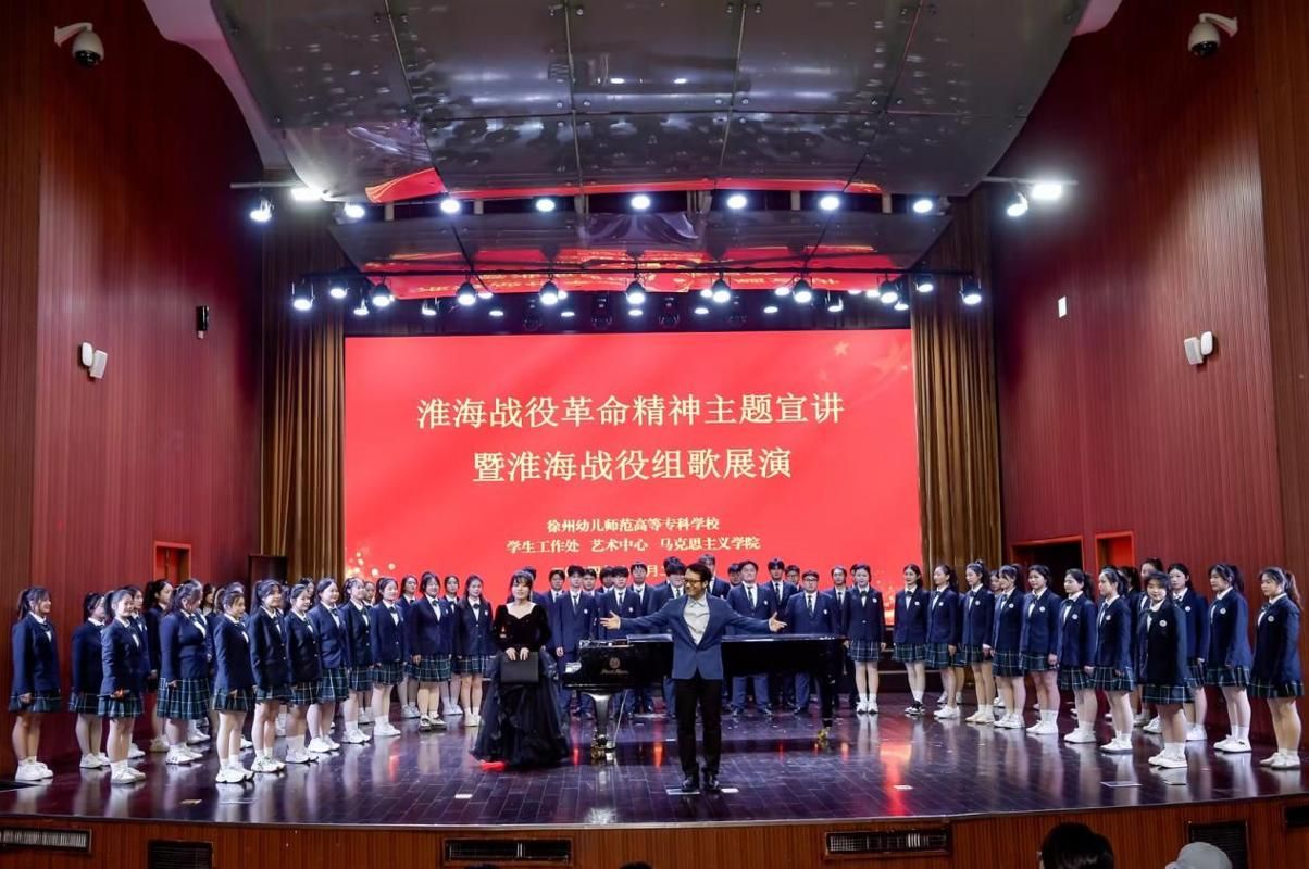 在致美楼音乐厅举行淮海战役革命精神主题宣讲会暨淮海战役组歌展演活动。学生工作处、艺术中心、马克思主义学院相关负责人,各学院党总支副书记、辅导员、班主任及学生代表参加了此次活动。
