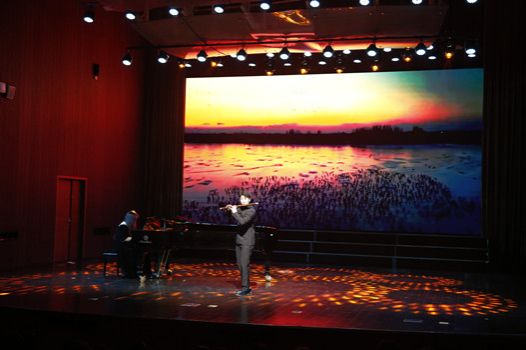 在声乐、器乐等专业领域的深厚底蕴。女声独唱《我爱这土地》以其深情的演唱,表达了对祖国大地的无限热爱;女生群舞《欢歌共舞》洋溢着青春的活力与喜悦。最后,全体演员共同合唱《我和我的祖国》,激昂的歌声将音乐会的气氛推向了最高潮。