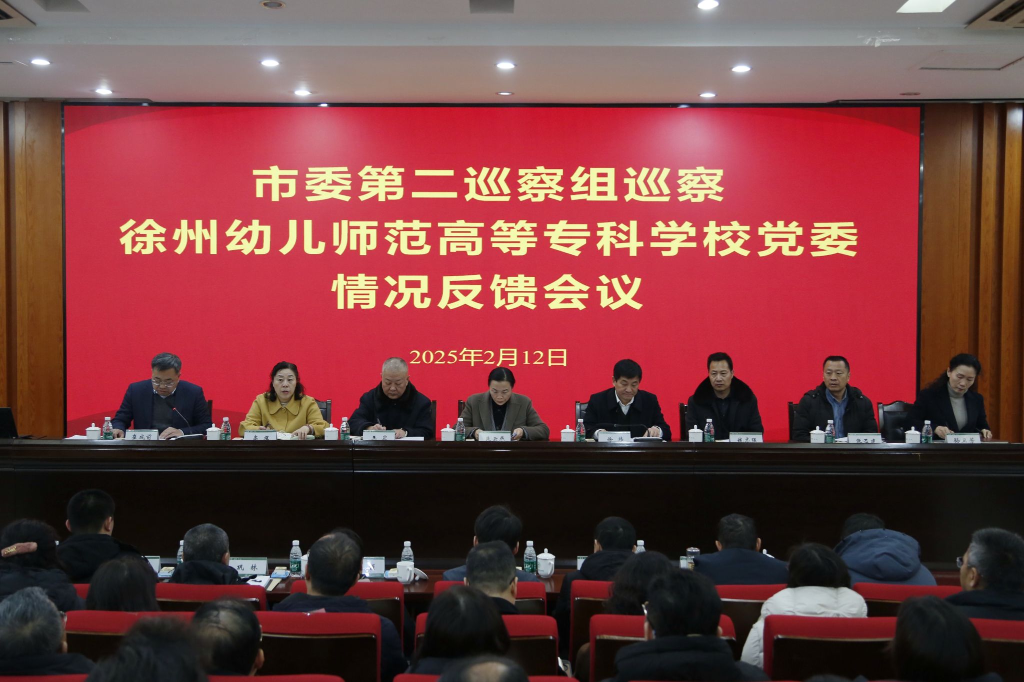 市委第二巡察组副组长王岩、钱志强、高煜、张丕建同志,市委组织部干部四处、市纪委五室、市委第二巡察组相关同志以及徐州幼专在校领导、近三年退出岗位的校领导及全体中层正职干部列席会议。