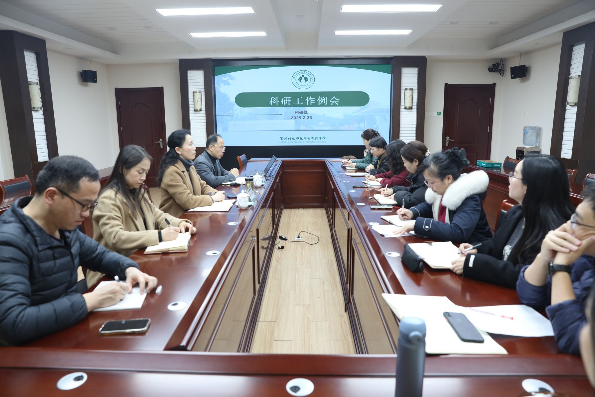 在洞山校区崇师楼208会议室召开新学期科研工作会议,校长孙卫芳出席会议并讲话,科研处相关负责同志,各二级学院院长、科研副院长参加会议。会议由科研处处长李飞主持。