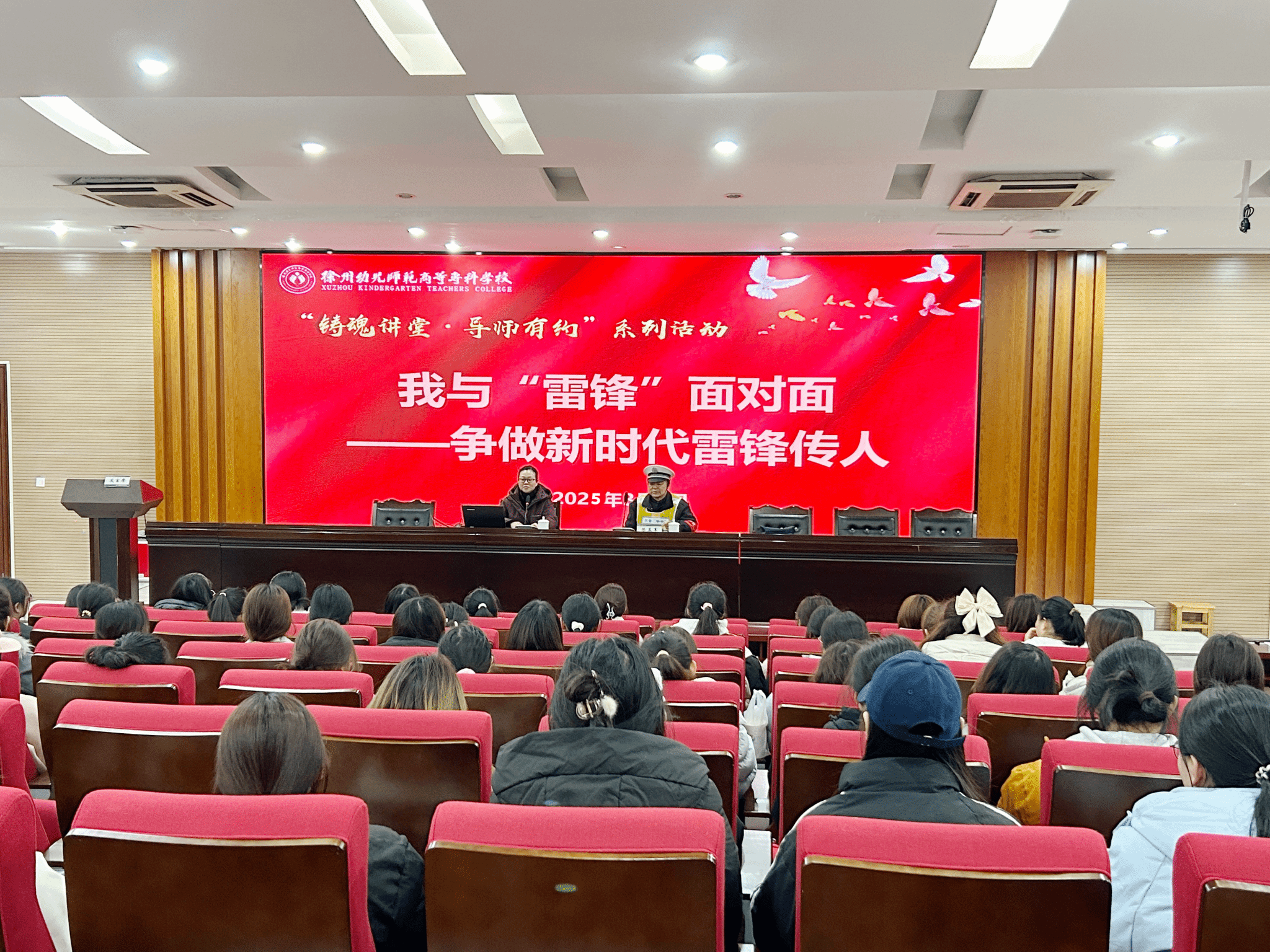 在碧螺校区学术报告厅举行本学期首期“铸魂讲堂·导师有约”主题讲座。此次讲座特邀全国“学雷锋先进个人”陈孟军担任主讲,主题为“我与‘雷锋’面对面:做新时代雷锋传人”。学生工作处相关人员、各学院学生代表参加了讲座,讲座由学生工作处处长陈繁主持。