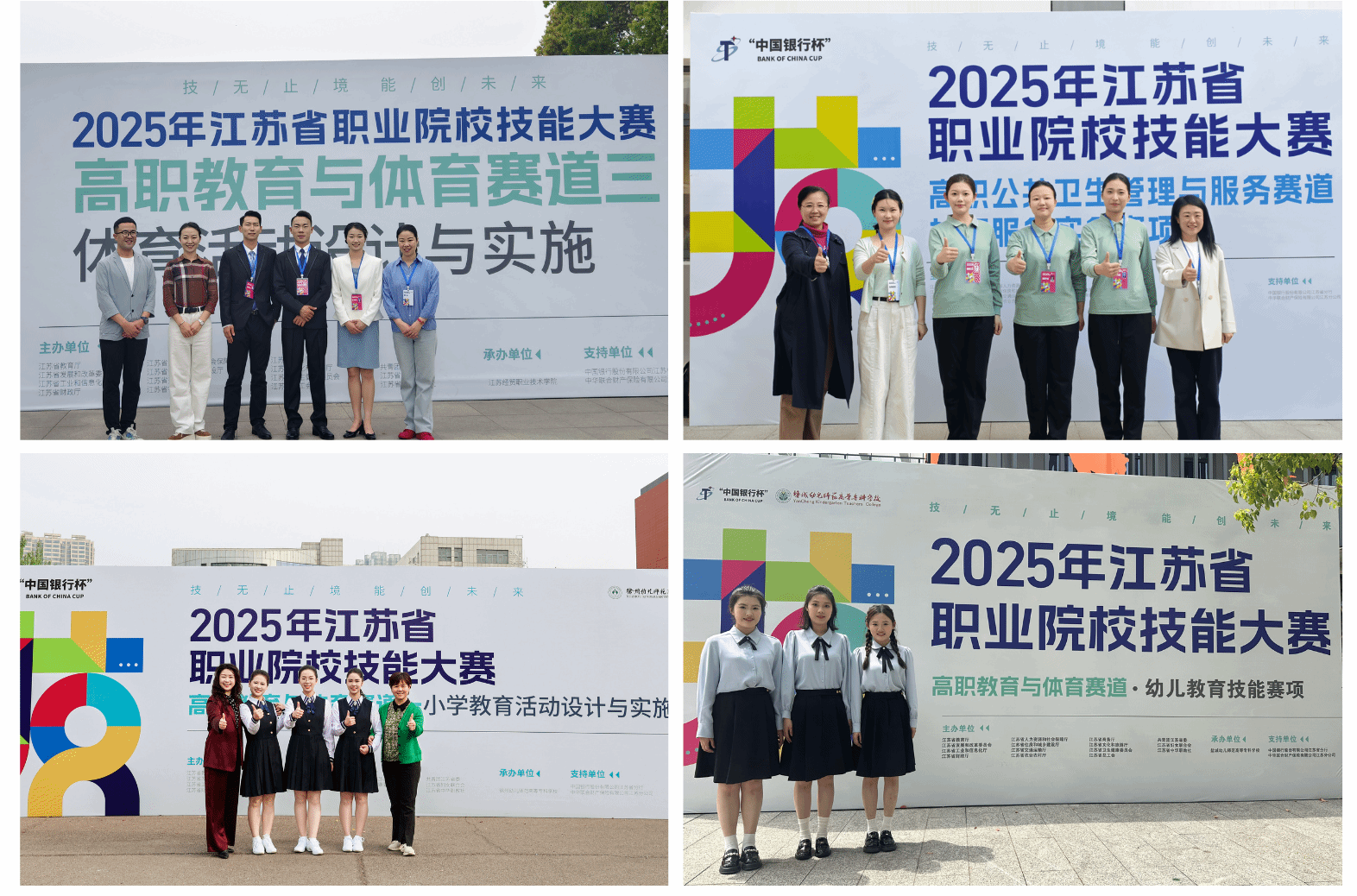 自备赛伊始,校领导高度重视、全程关注,深入备赛现场指导,各职能部门从设备保障、师资调配到后勤服务,全方位保驾护航。各学院组建由骨干教师、行业专家和优秀学生组成的比赛团队,根据赛项设置与技能要求,创新“技能化+模块化+情境化”训练模式,针对竞赛模块组织研讨,紧扣行业标准打磨设计方案;参赛选手们凝心聚力,反复开展模拟展示,在细节中追求极致,不断夯实专业功底,注重创新意识、团队协作等职业素养的融入。本年度,学生赛“社区服务实务”和“体育活动设计与实施”赛项获得一等奖,“幼儿教育技能”“小学教育活动设计与实施”“健身指导”“环境艺术设计”赛项获得二等奖,“健康养老照护”“婴幼儿照护”“视觉艺术设计”“声乐、器乐表演”赛项获得三等奖。教师赛“小学教育活动设计与实施”赛项获得三等奖。作为承办校,“小学教育活动设计与实施”赛项的组织、实施与服务,得到了组委会、专家团队和参赛校的一致好评。