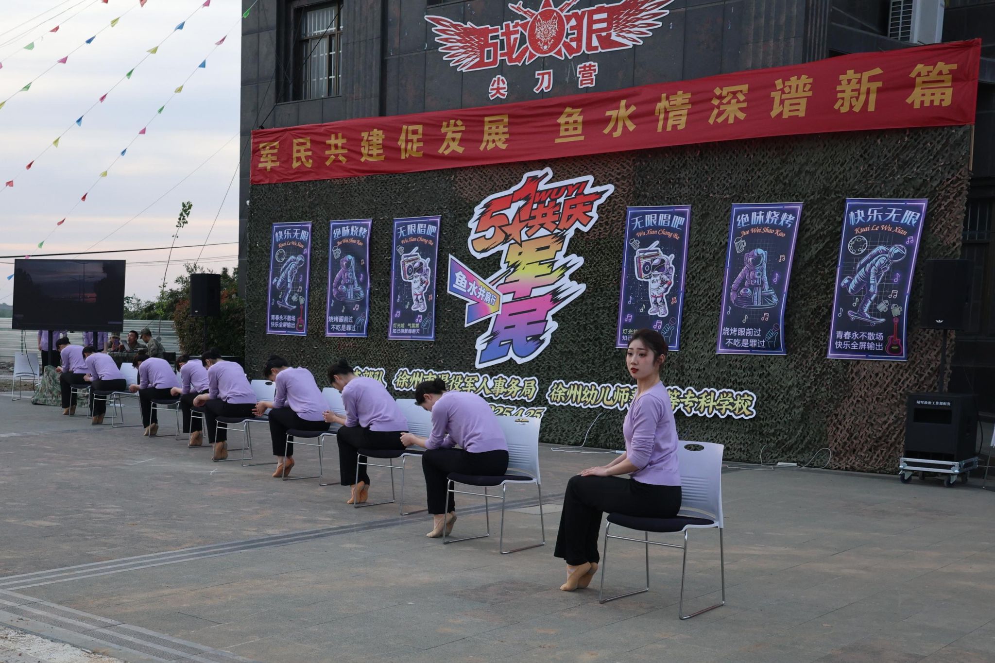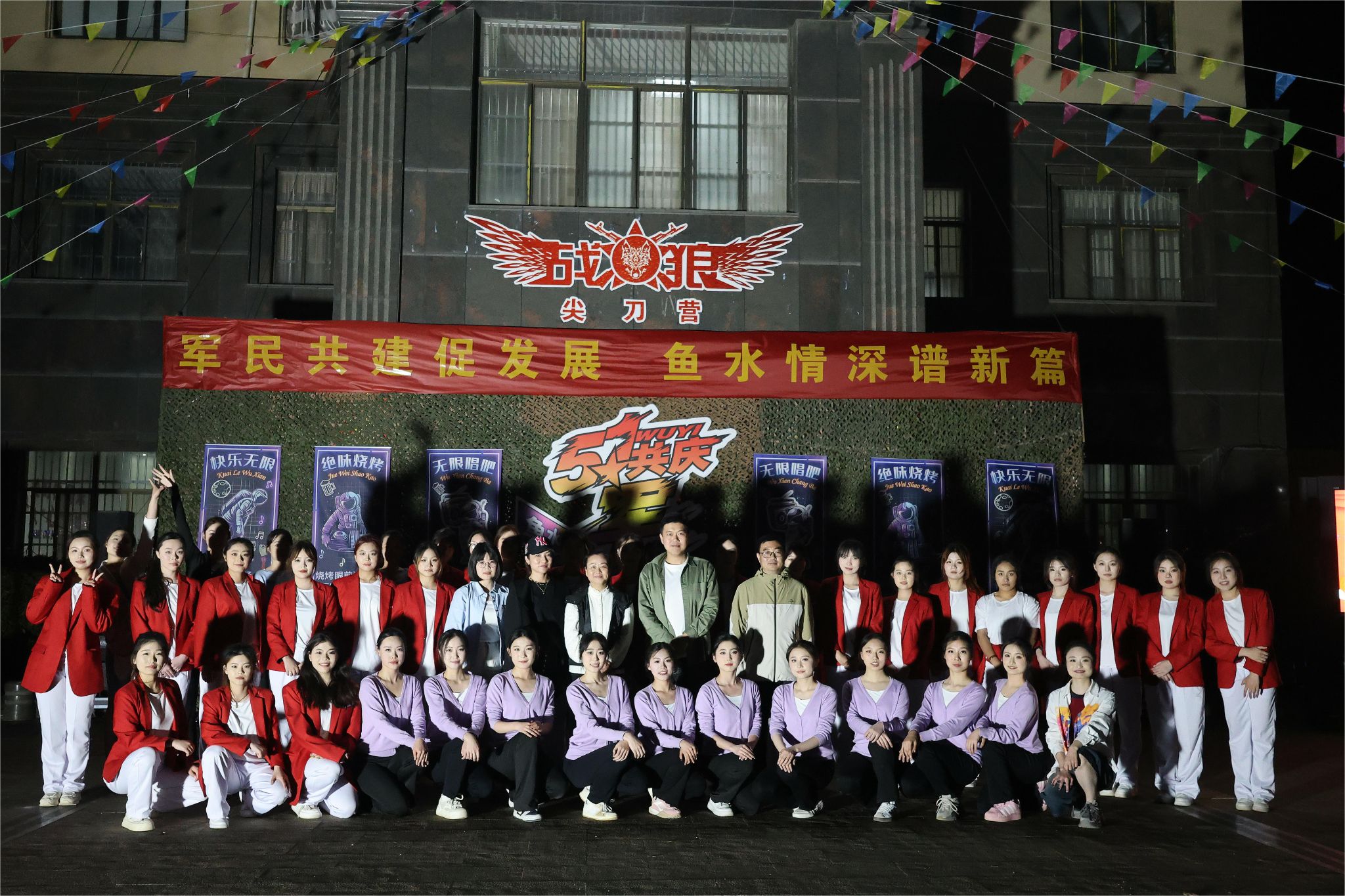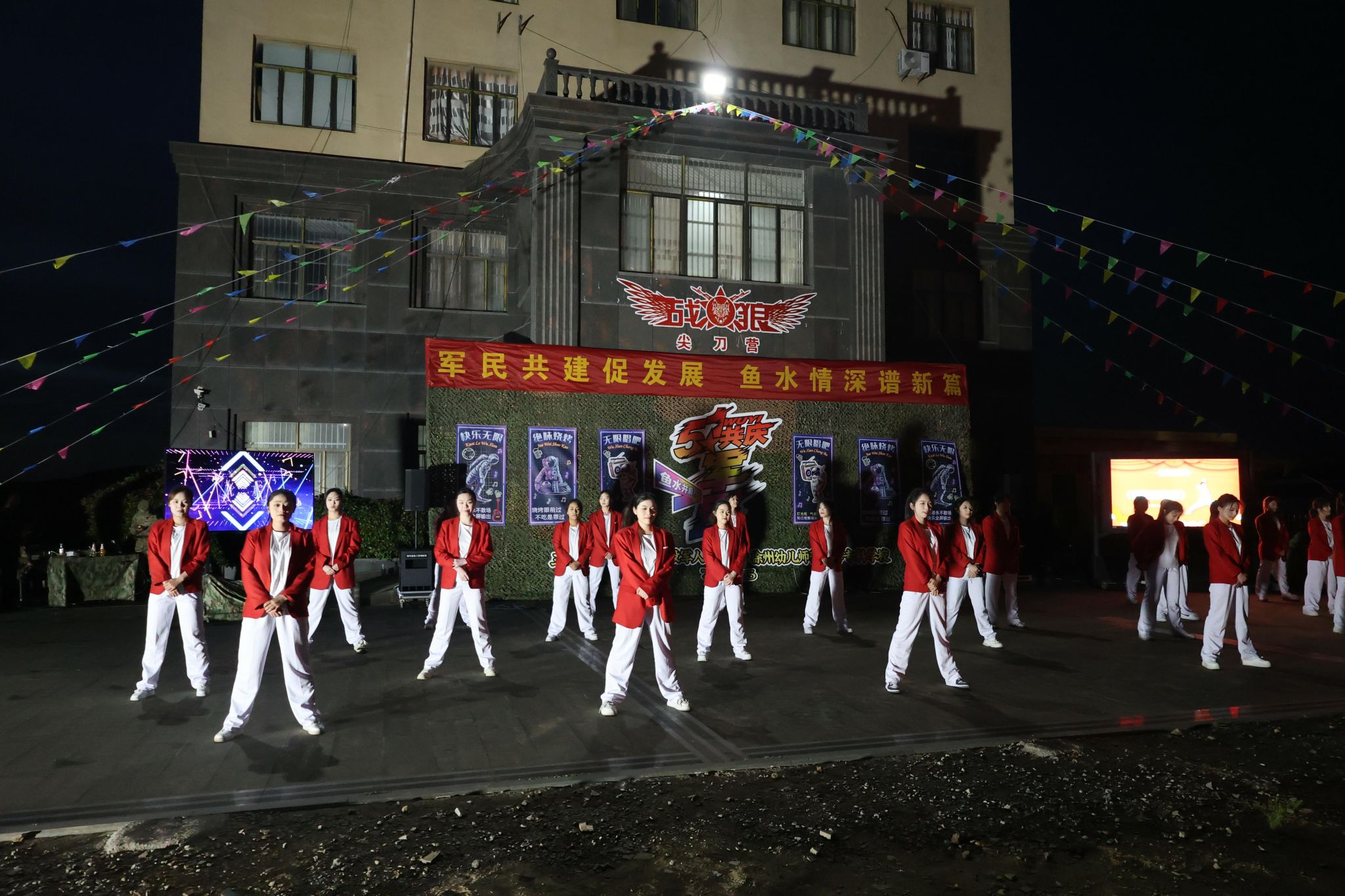 师生赴王杰部队某单位驻训点,与驻训官兵联合开展“庆五一,双拥共建主题晚会”。学工处、校团委及大学生舞蹈团40余名师生参加了活动。