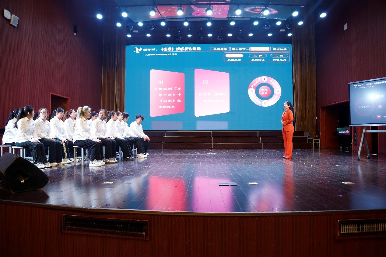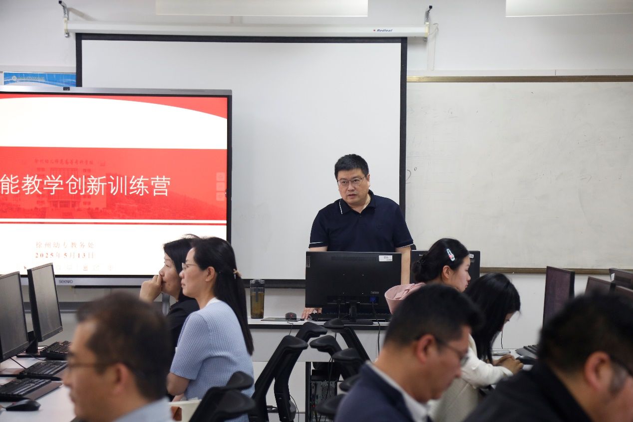在教师教学能力提升活动中,学前与特殊教育学院名誉院长王清风教授以“弘扬教育家精神,赋能高校教师专业成长”为主题,为老师们作了别开生面的“名师面对面”主题报告。人工智能学院路标教授主讲“AI赋能教学创新训练营”,通过理论讲解与实操演练,指导教师掌握AI工具在教学设计辅助、课件制作、作业批改等场景中的应用技巧。音乐舞蹈学院张晴、高蕾、徐蓉三位省级教学能力大赛获奖教师,以《红色儿童音乐剧国际创排与展演》课程为载体,通过有生课堂展示、说课、模拟授课等多元化示范形式,生动呈现课程理念创新、教学设计优化与教学实施落地的一体化实践。“教学创新”主题沙龙邀请省级教学能力大赛获奖教师韩坤、梁珊,结合参赛与教学改革经历剖析典型案例,围绕“以赛促教、以赛促改”模式开展深度交流,为青年教师提供实践指导。