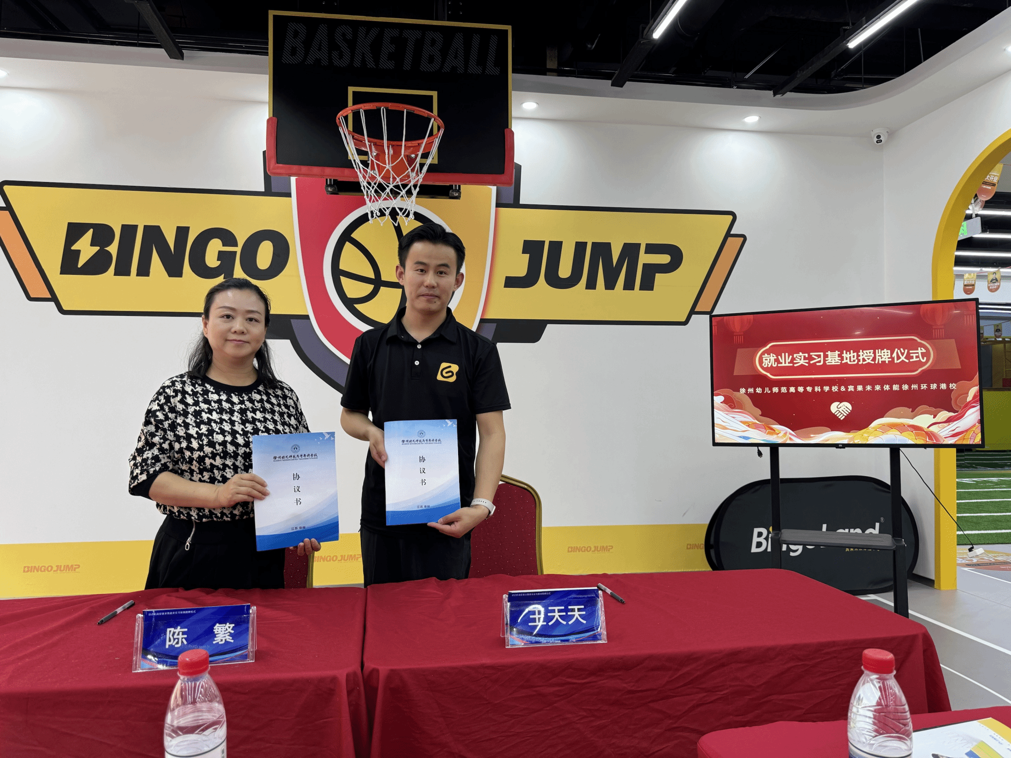经充分研讨,校企双方达成多项合作共识。学生工作处处长陈繁与王天天代表双方签署就业实习基地共建协议,刘芳铭向宾果未来儿童体适能中心授予“糖果派对官方