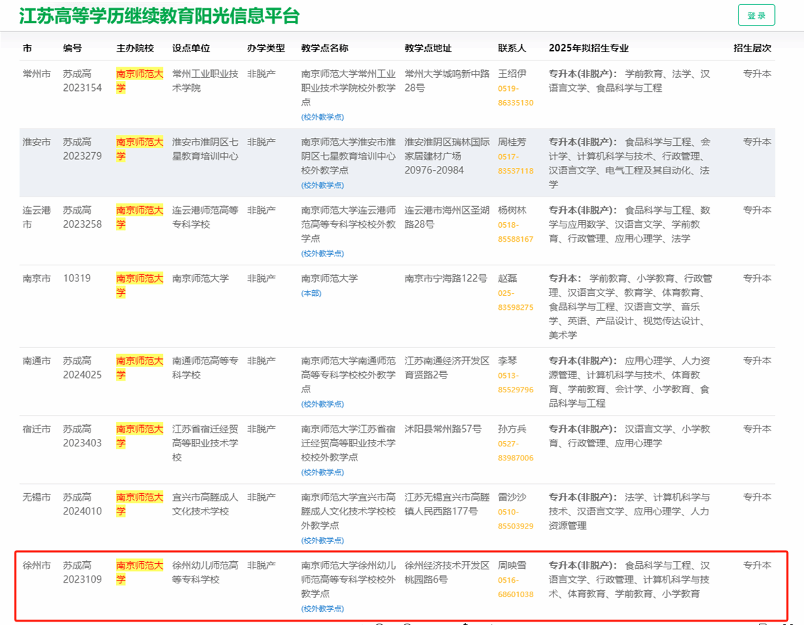 与南京师范大学合作设立的徐州幼专教学点新增“行政管理”“体育教育”“计算机科学与技术”“食品科学与工程”4个专升本函授专业,加上原有的“学前教育”“小学教育”“汉语言文学”3个专业,专升本专业总数扩展至7个;同时糖果派对官方