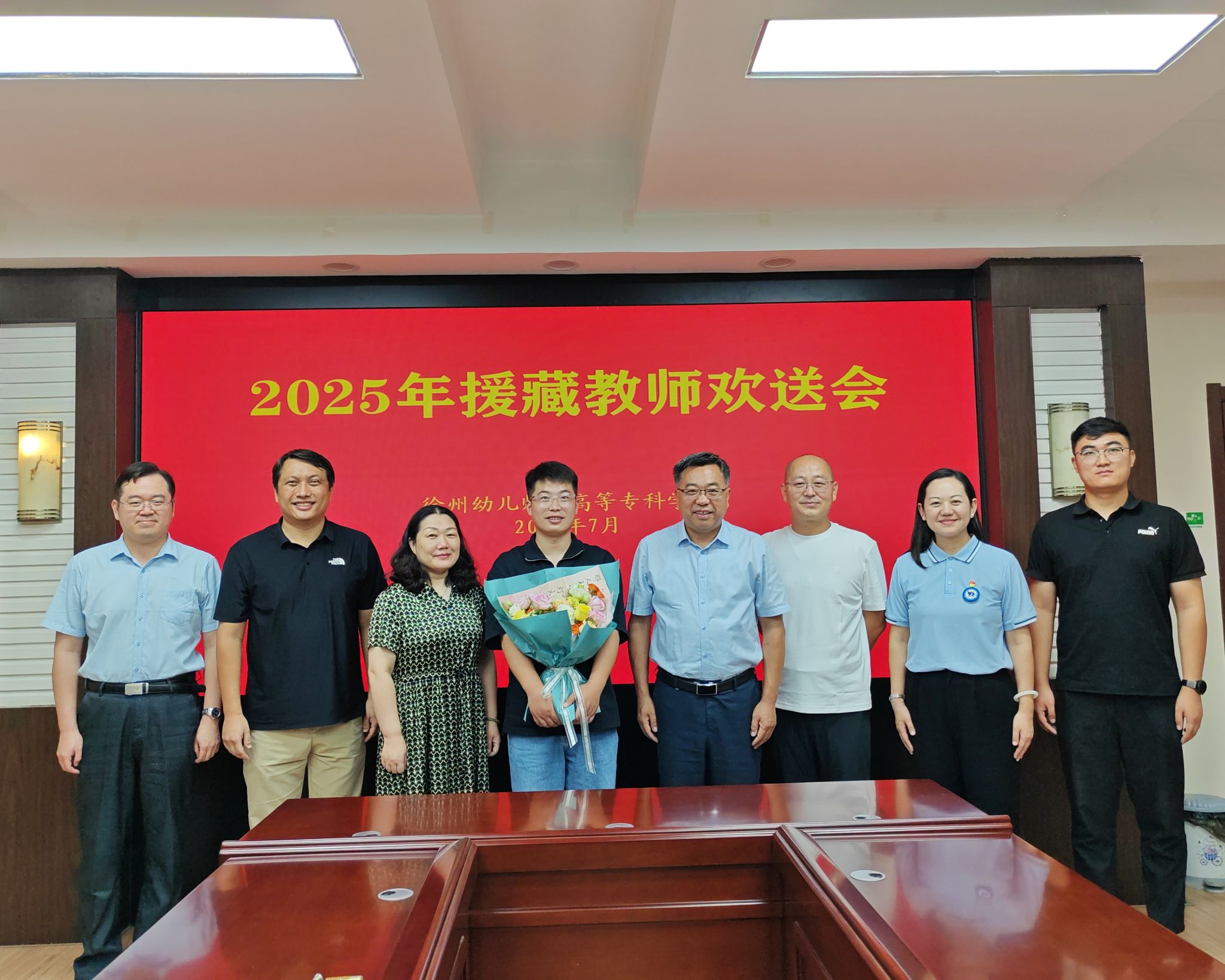 2025年援藏教师欢送会在洞山校区崇师楼208会议室举行。党委书记崔成前,党委委员、副校长王宁,相关部门负责人以及援藏教师参加欢送仪式,会议由党委教师工作部部长、教师发展中心主任刘伟主持。