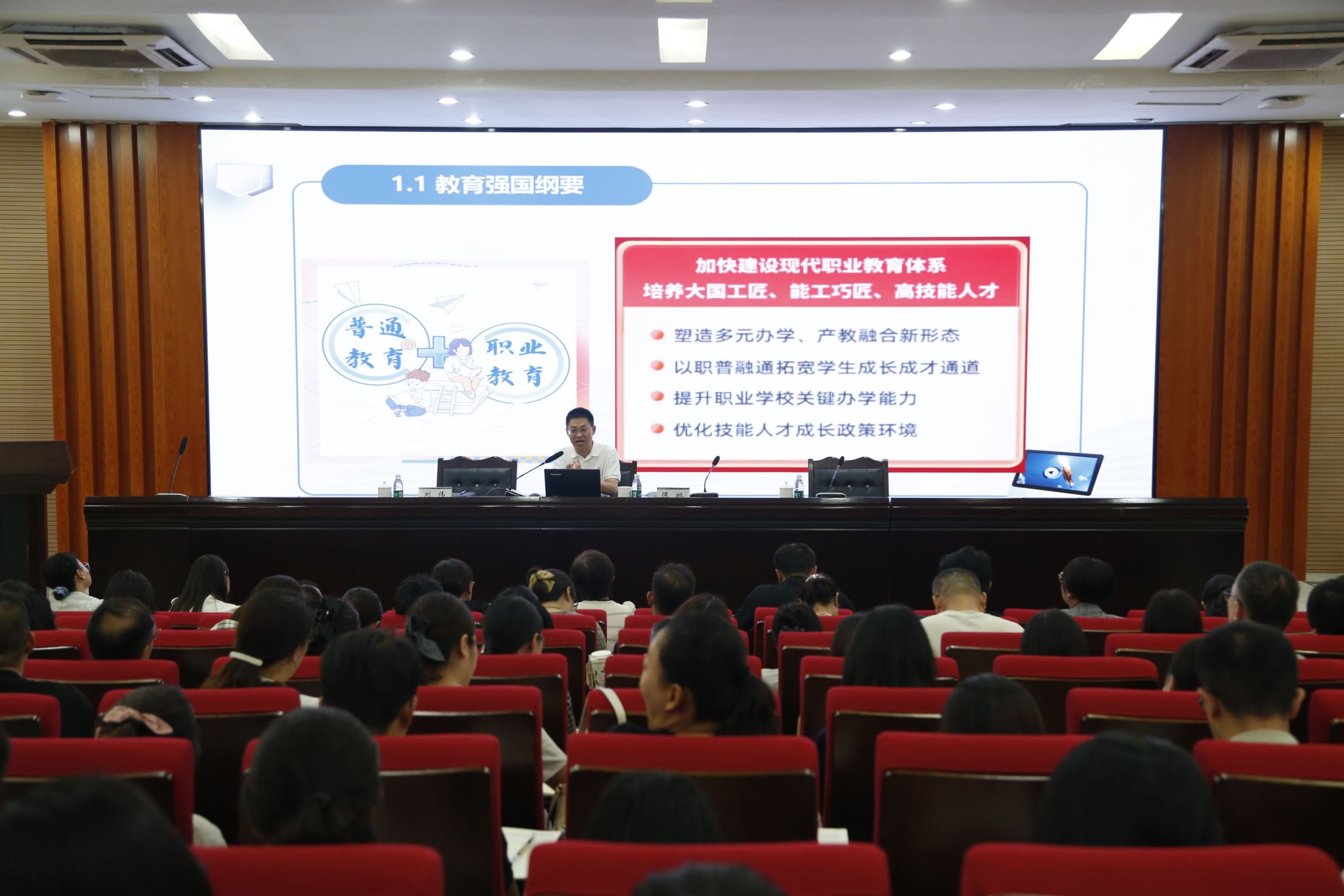 在碧螺校区学术报告厅举行了2025年暑期教师培训,全体专任教师参加培训。校长孙卫芳出席开班仪式并致开幕词,仪式由副校长王宁主持。