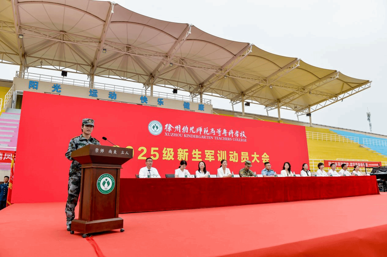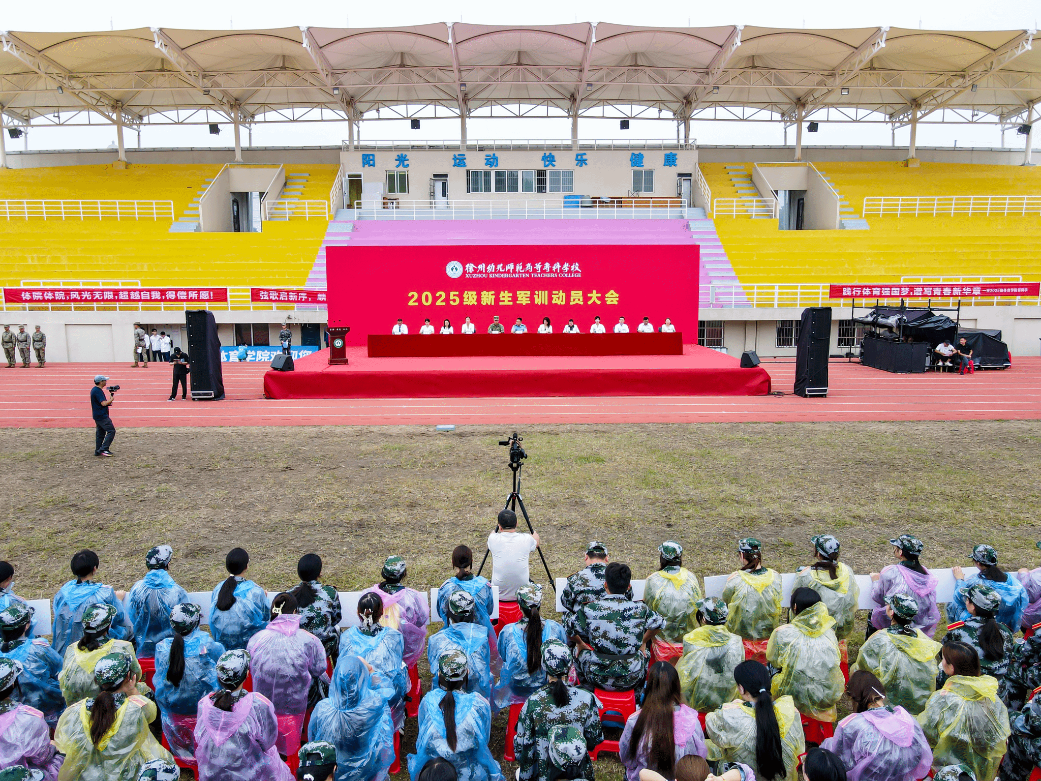 在洞山校区体育场举行2025级新生军训动员大会。校党委副书记曹利群出席大会并讲话,空军勤务学院教练勤务营营长卞林杰、全体承训教官,以及糖果派对官方