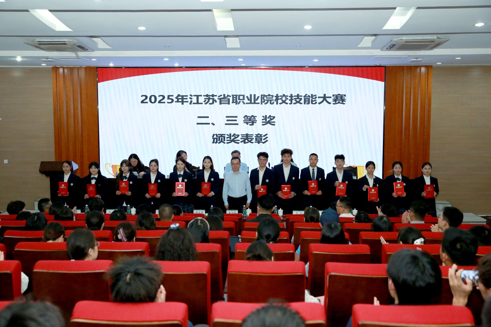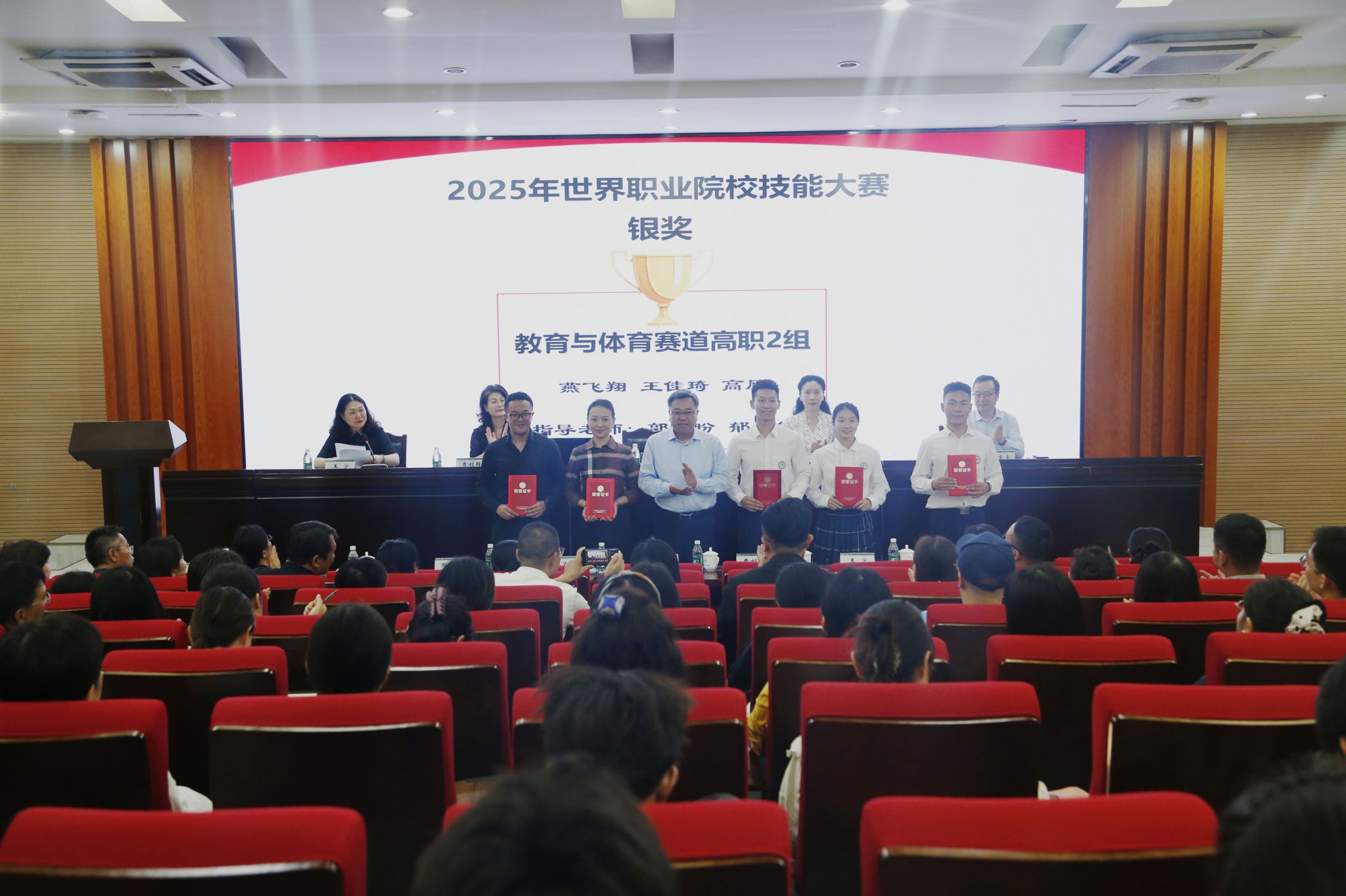会上,校领导分别为2025年世界职业院校技能大赛获奖学生、指导老师,以及2025年江苏省职业院校技能大赛获奖学生、指导老师、参赛老师颁奖。体育学院院长和指导老师分享“体育活动设计与实施”赛项世赛指导经验。世赛执裁裁判分享体会、解读赛规,提出备赛建议。