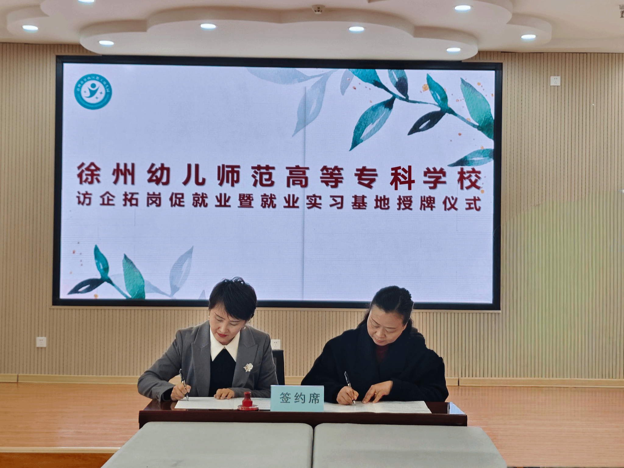 最后,双方就教学、科研、实习就业等方面的合作进行了深入交流,达成合作共识,学生工作处处长陈繁与彭娜娜代表校园双方签订就业实习基地合作协议,曹利群向园方授牌,全体参会人员合影留念。