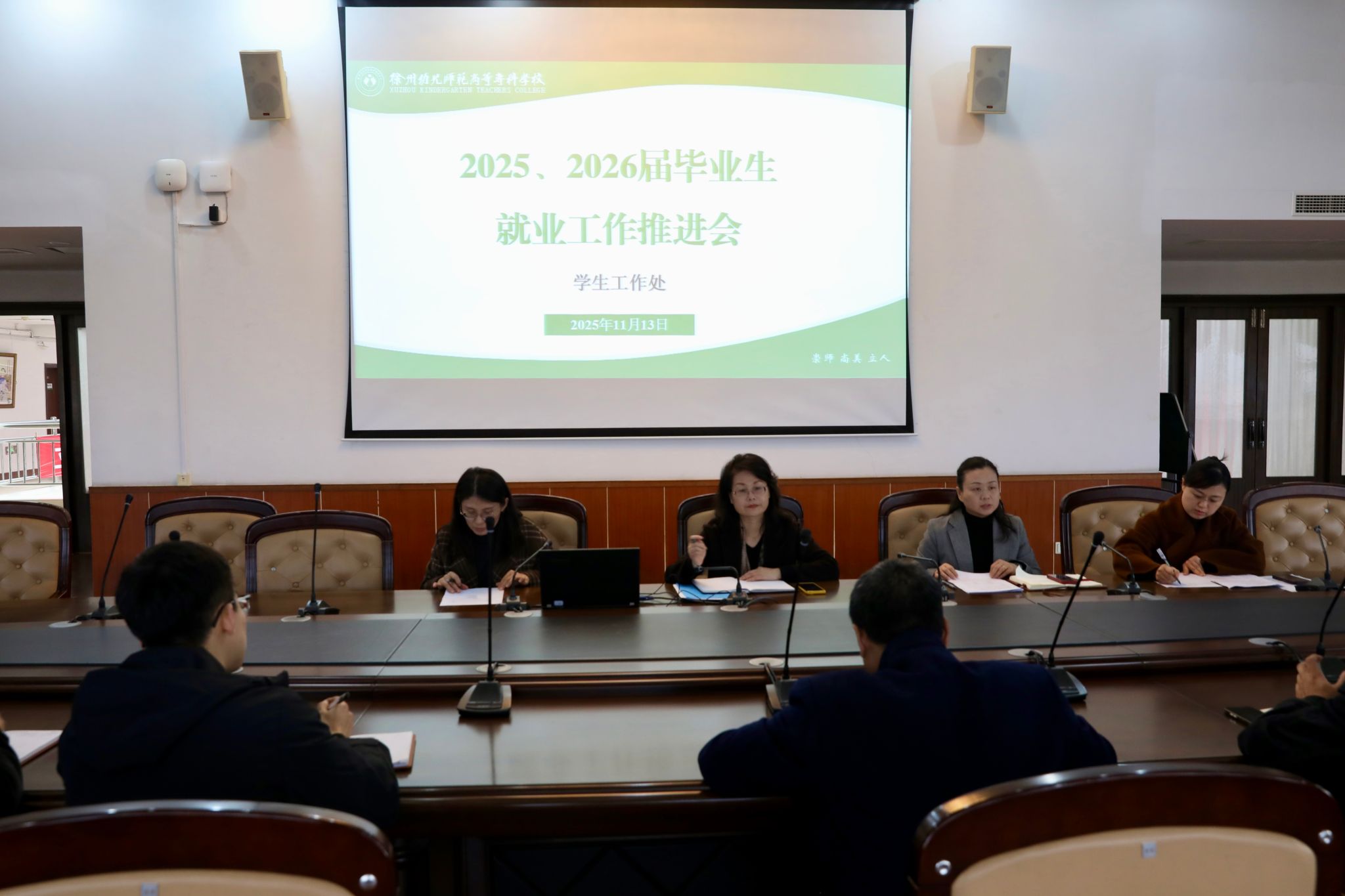在洞山校区崇师楼第二会议室召开2025、2026届毕业生就业工作推进会。校党委副书记曹利群出席会议,学工处相关人员,各学院书记、副书记参加会议,会议由学工处处长陈繁主持。