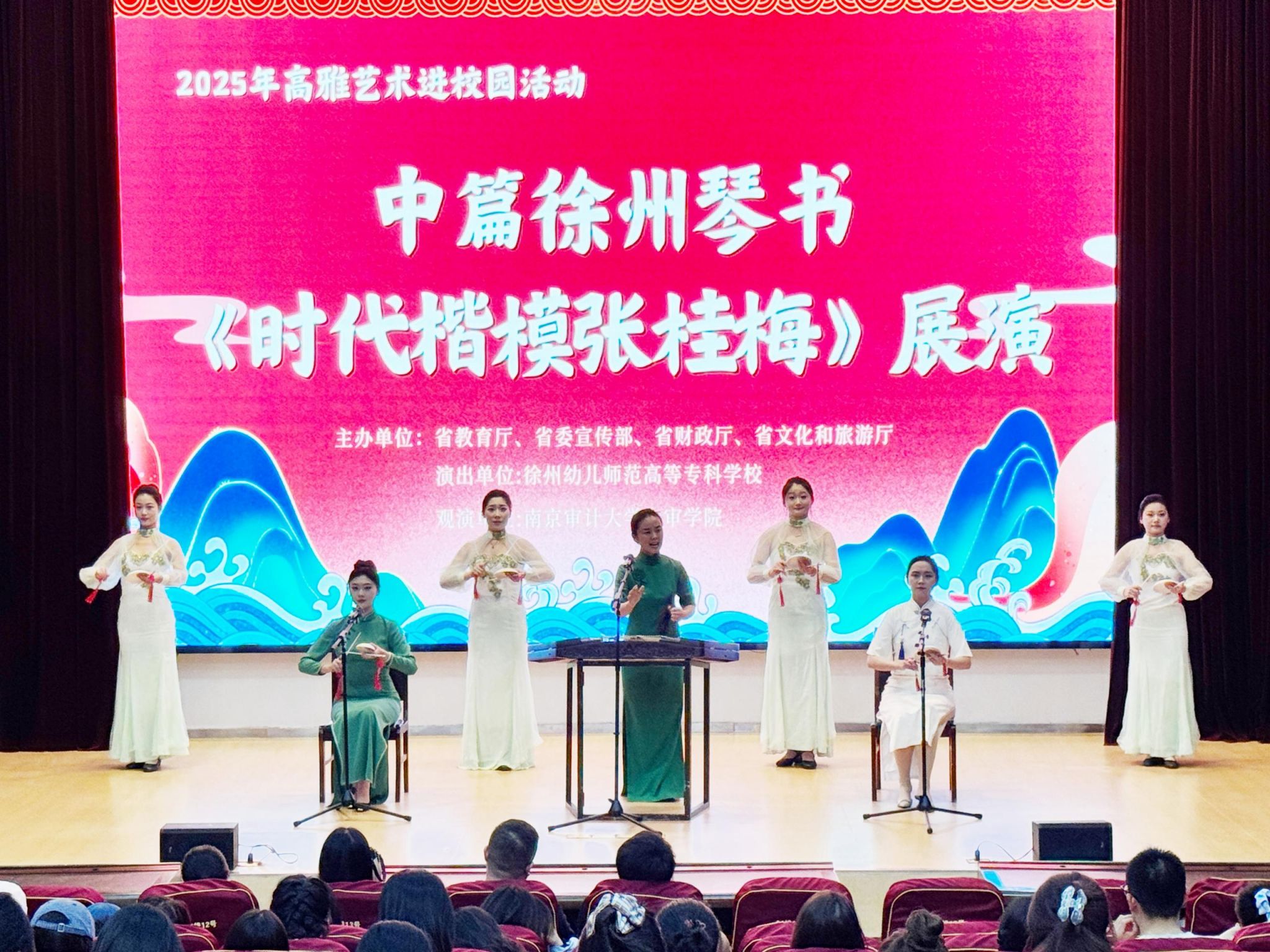创排的中篇徐州琴书《时代楷模张桂梅》在此精彩上演。作为中标省委宣传部、省教育厅、省财政厅、省文旅厅联合主办的2025年度高雅艺术进校园活动的精品剧目,这部作品以国家级非遗艺术为载体,为现场师生带来了一场兼具文化韵味与精神力量的艺术盛宴。