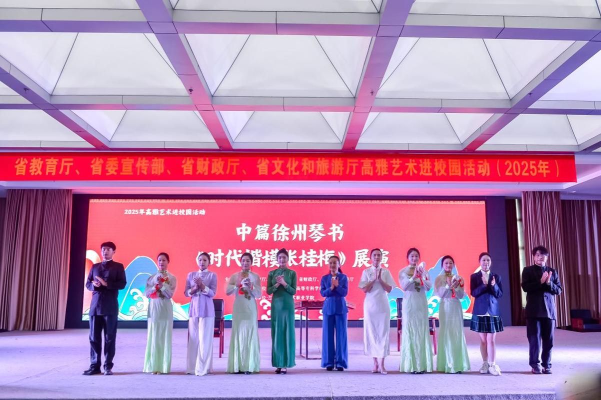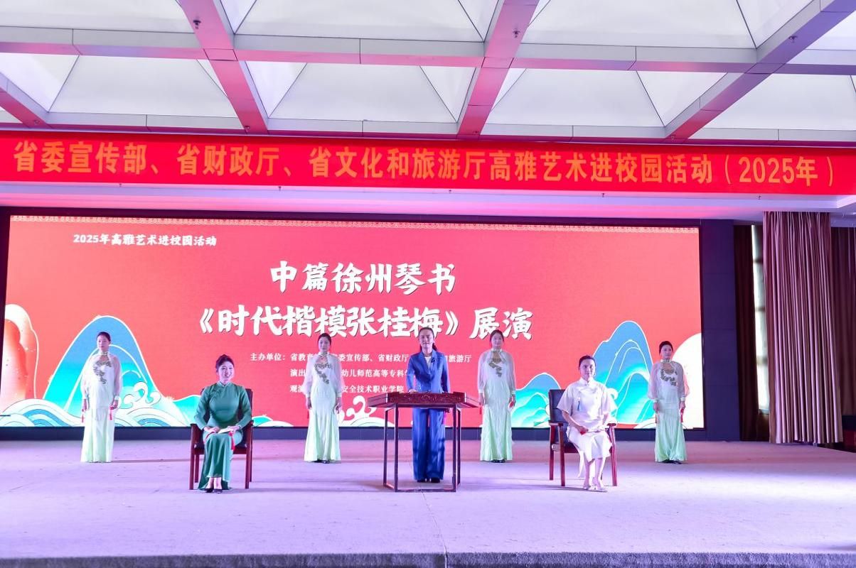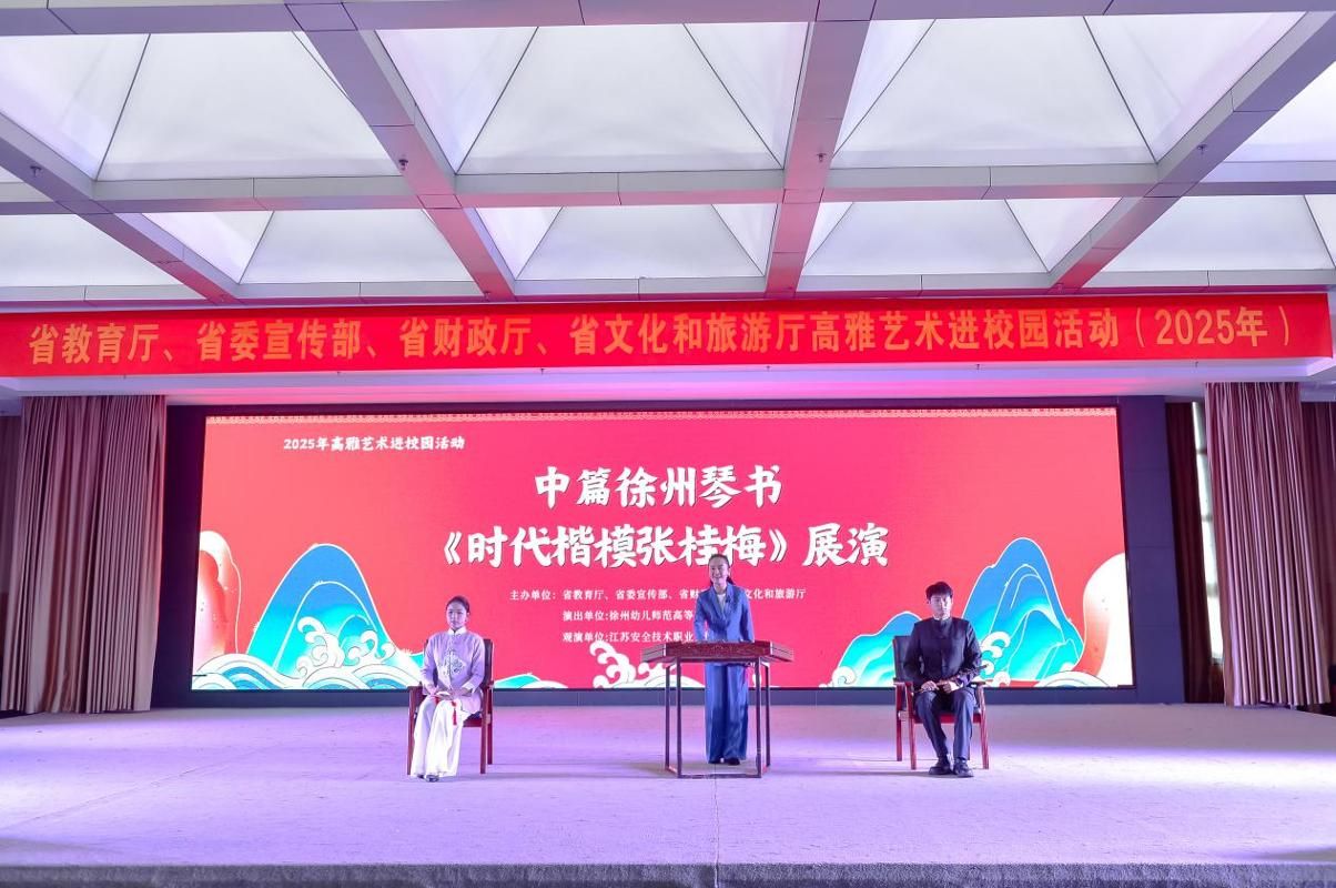 创排的中篇徐州琴书《时代楷模张桂梅》走进江苏安全技术职业学院,为师生们带来了一场融合非遗艺术与榜样力量的精彩演出。作为2025年度高雅艺术进校园活动的重要剧目,本次展演由省委宣传部、省教育厅、省财政厅、省文旅厅联合主办,为现场师生呈现了一堂别开生面的师德师风教育课与非遗文化体验课。