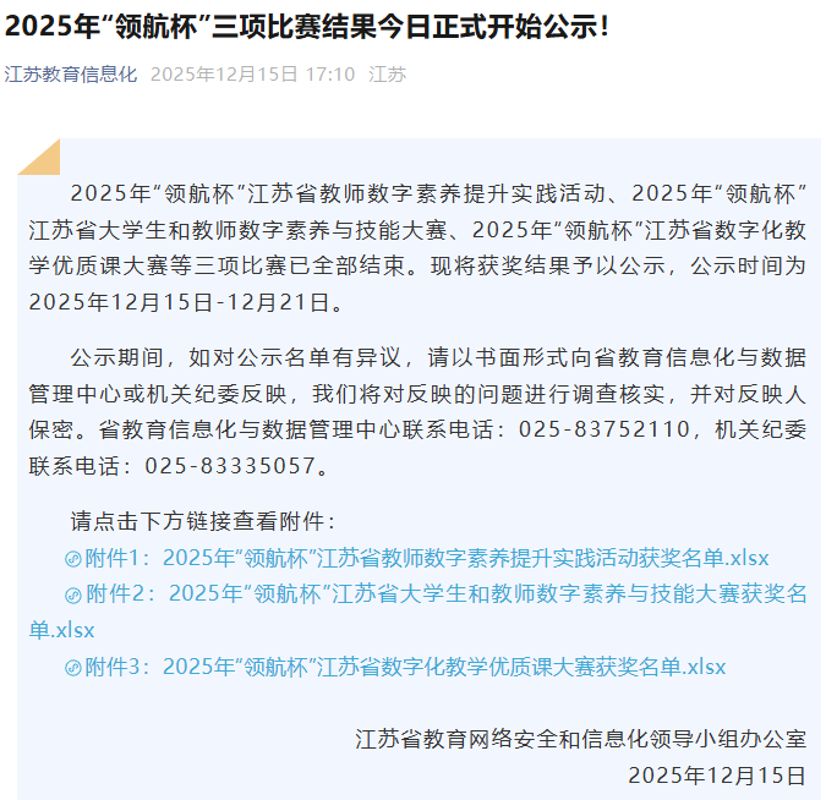 近日,江苏省教育网络安全和信息化领导小组办公室公布2025年“领航杯”江苏省教育数字化应用能力大赛获奖名单。糖果派对官方